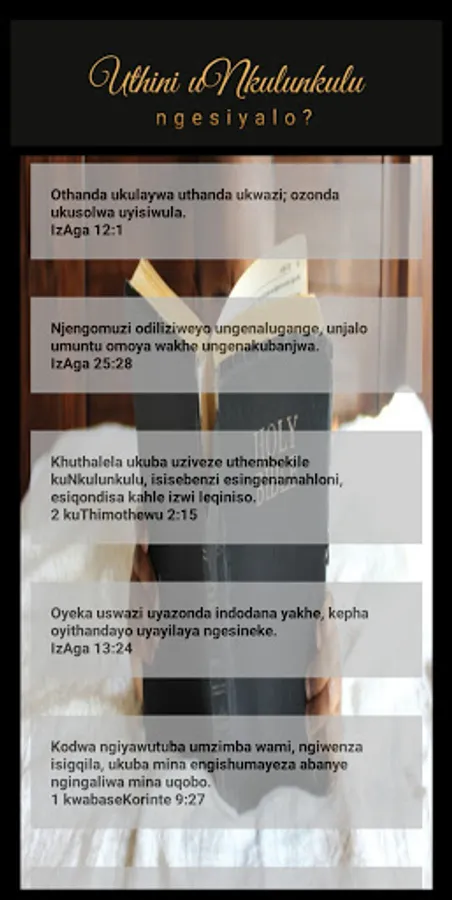 Lolu uhlelo lokusebenza oluncane. Kuzokusiza ukuphendula imibuzo enzima. UNkulunkulu uyakuthanda futhi uhlala enawe, noma ngabe unaziphi izinkinga.