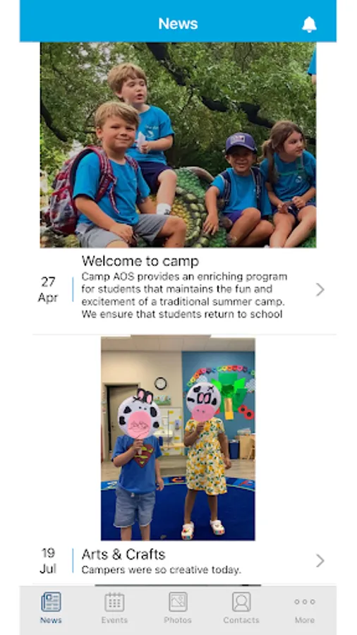 • A news feed with photos to see everything that's happening at Camp AOS