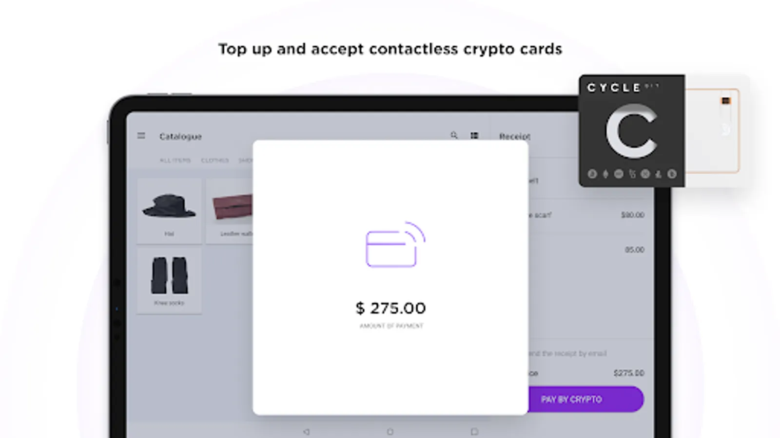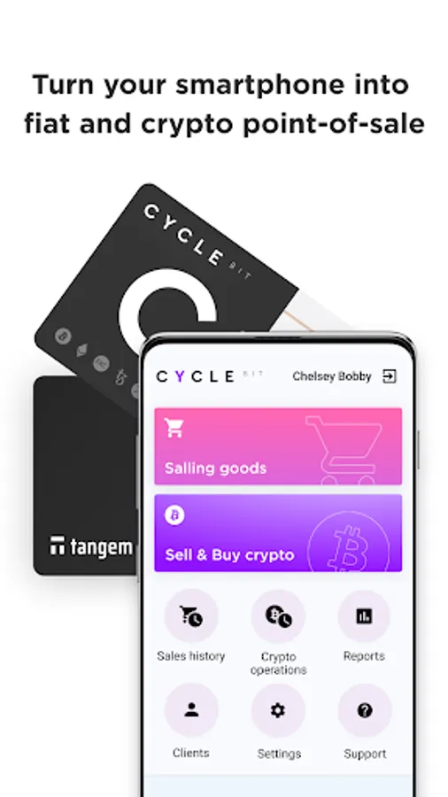 · Top up and accept contactless crypto cards (we support Cycle Cards and Tangem);