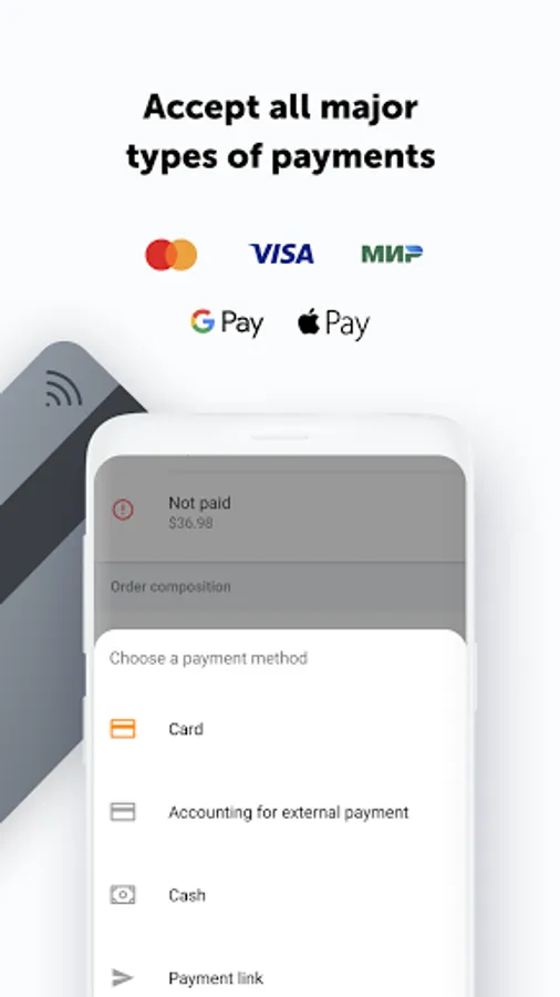 To accept contactless payments, 2can POS works with a 2can SoftPOS app or a P17 reader, developed by 2can. Both 2can SoftPOS app and P17 reader undergo an annual security audit in an international laboratory accredited by payment systems. 2can service itself annually confirms compliance with the highest-level PCI DSS standard.