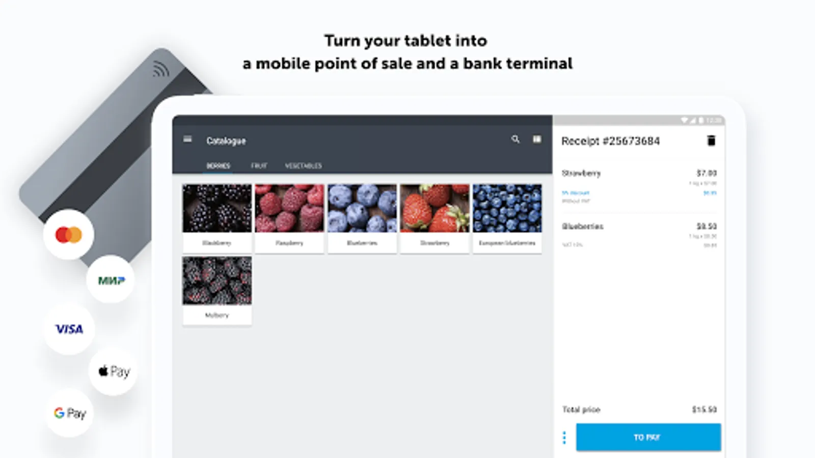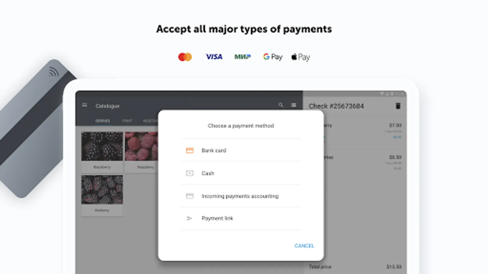 · Send receipts to email or print them out on connected devices