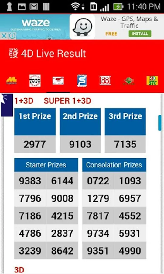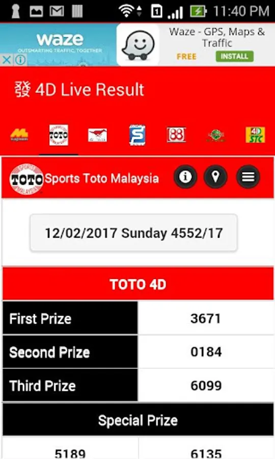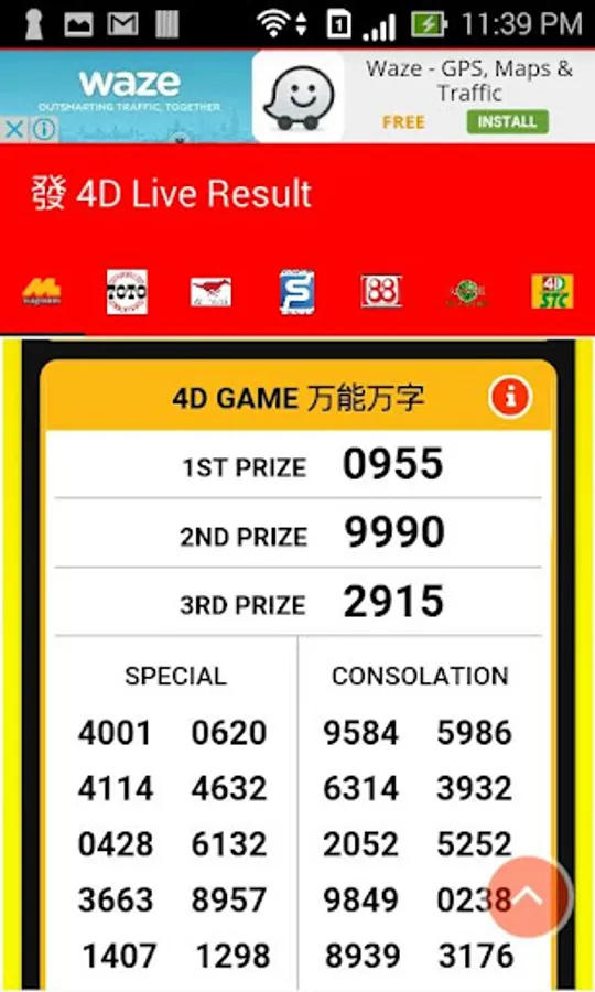+Swipe left and right for switch for different 4D Result