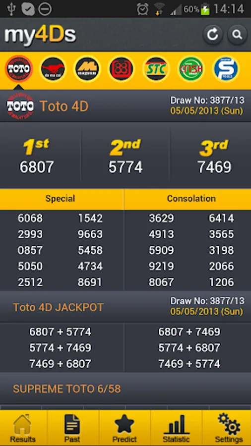 1) All draw results in Malaysia, Singapore, Brunei. Magnum 4D, Toto 4D/5D/6D/Jackpot, Damacai 1+3D/6D, Singapore 4D/Toto, Sabah 3D/4D/Lotto, Sandakan 4D, Sarawak Cash Sweep