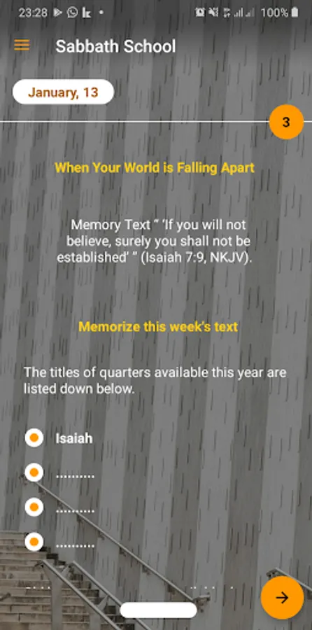 The study guide is released in quarters throughout the year, with a wide range of lessons from a chosen theme of study in a given quarter. The app makes it easier to follow up a bible study at any time of the day, and anywhere.