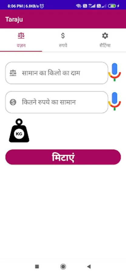 Result in Kilograms: in this text filed user will get the weight number that be according to amount and kg price.
