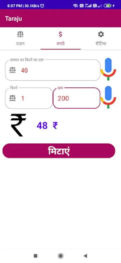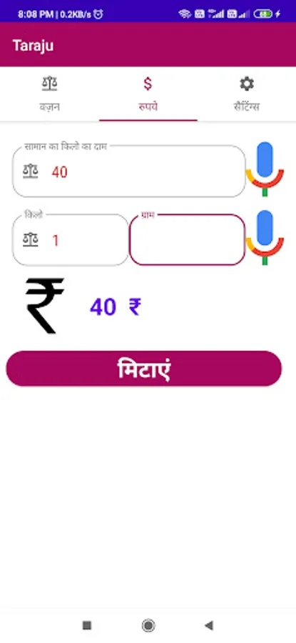 Result in rupees : in this text filed user will get the amount price he/she need to pay or buy.