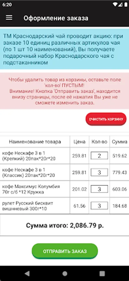 Formation of wholesale orders from stores in the Krasnodar Territory.