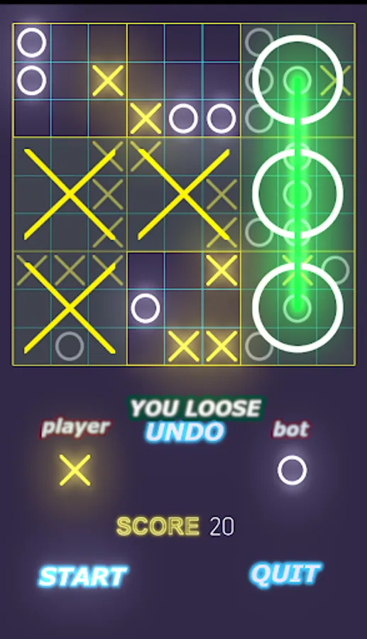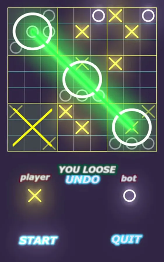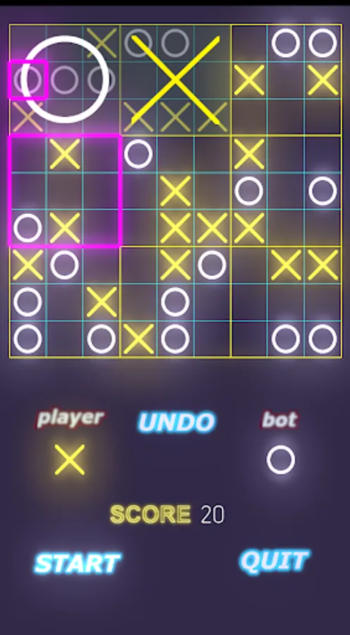 This strategic game will present its player a big 9 by 9 board. This board is divided into 9 smaller 3 by 3 boards. In mode 1 of the game the first player to capture any one of the 9 available smaller boards wins the game. In mode 2 the first player to complete 3 aligned successful 3 by 3 boards will win. There is a rules page to help you understand the game. A facebook page will also be created where you will be able to discuss about the strategies and post your game scores.