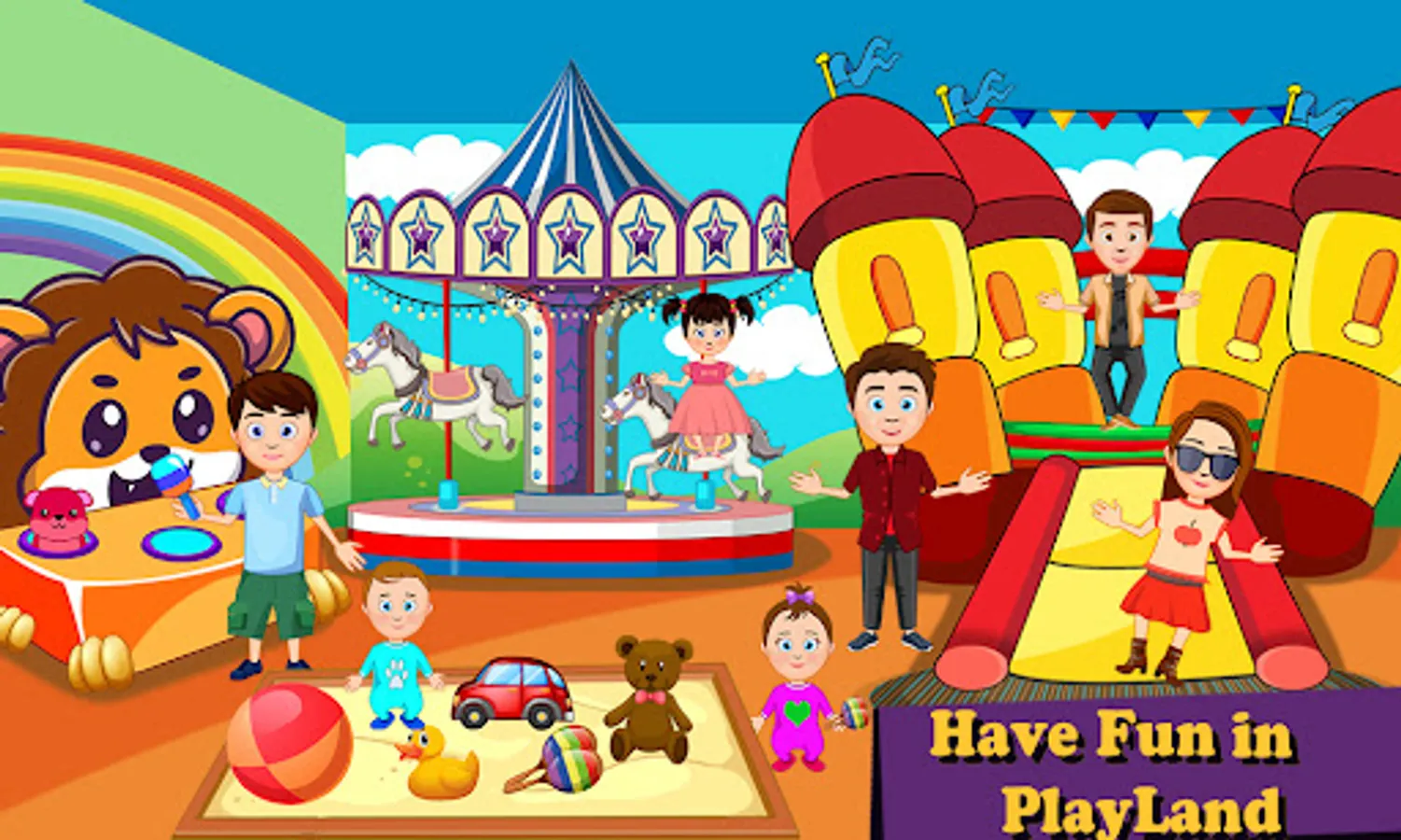 sliding area. Enjoy on spring car and hit hardly on hammer machine to get highest rank. Multiple toys and blocks available for kids fun in my city hotel town games.
