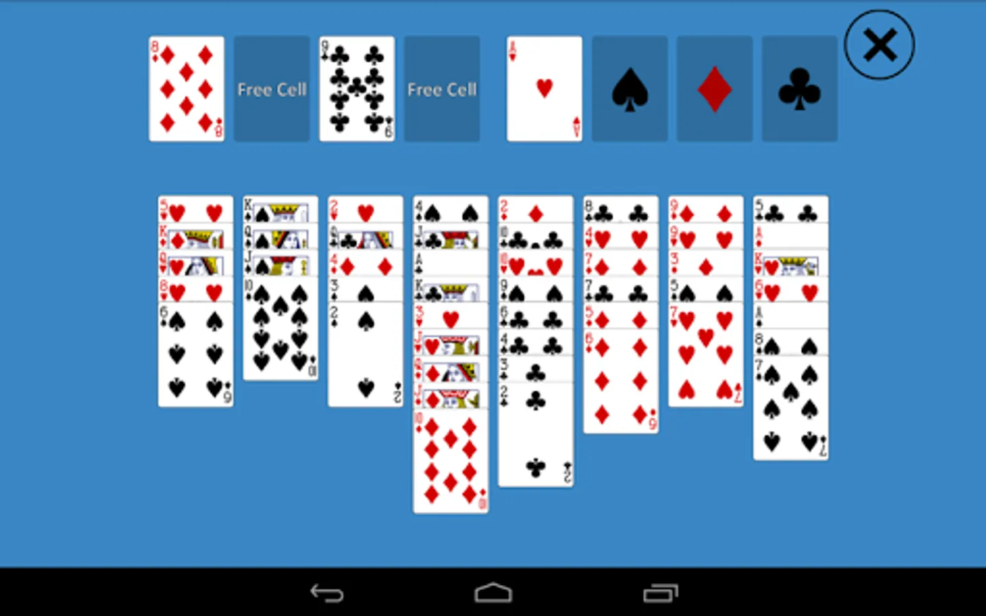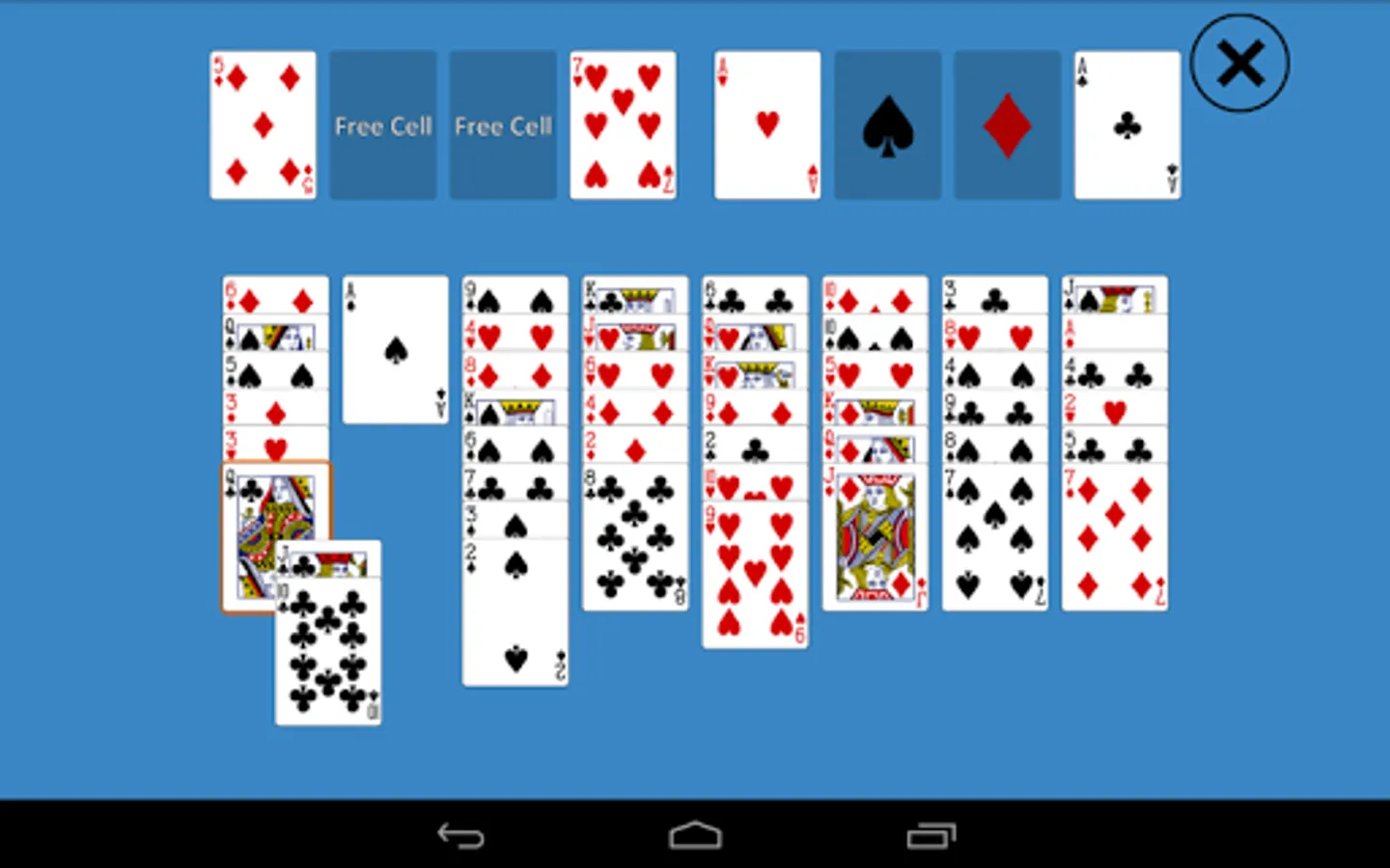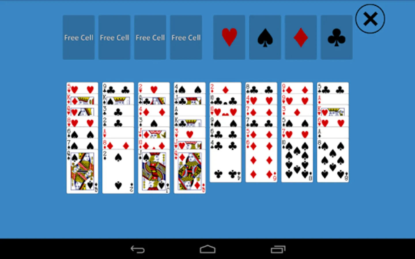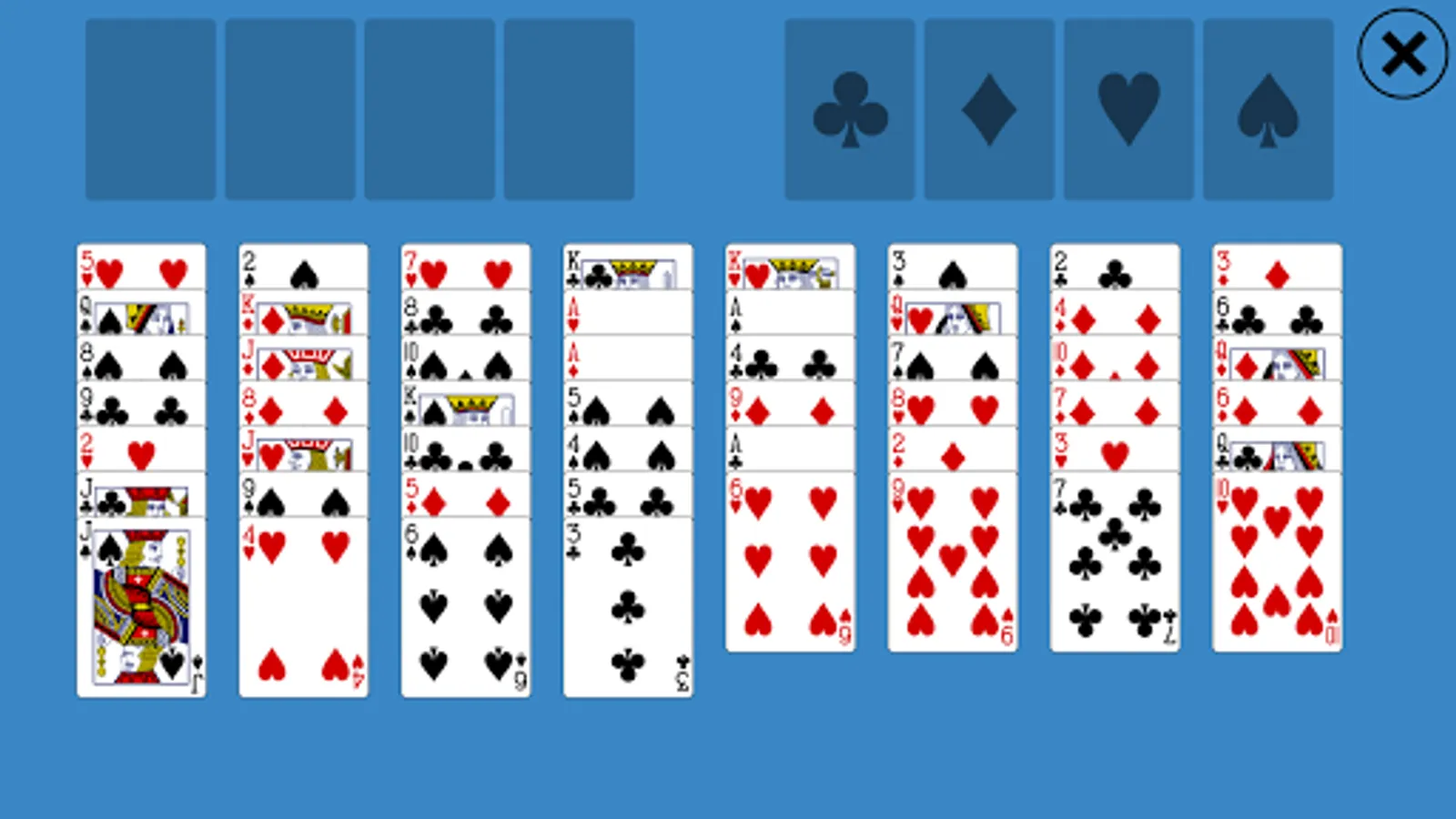 4 free cells are located at the top left corner of the screen,