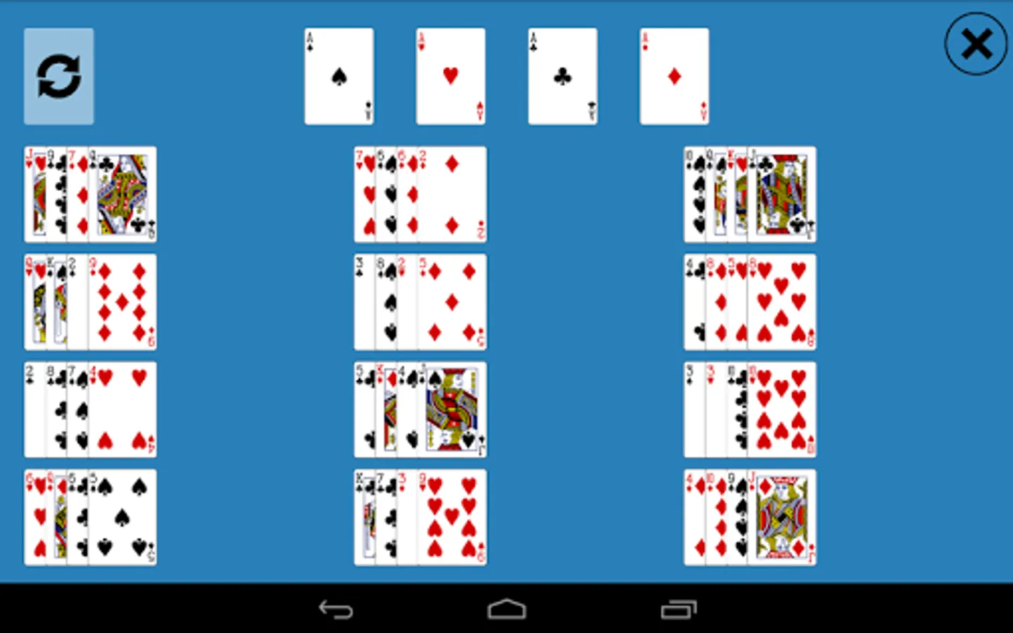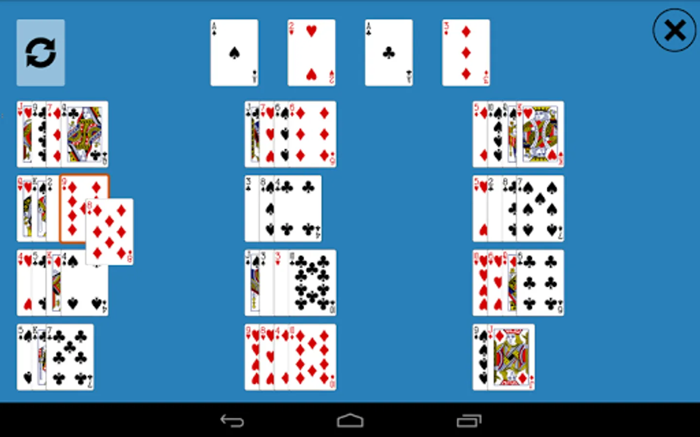 The goal is to move all the cards to the foundations in ascending order by suit.