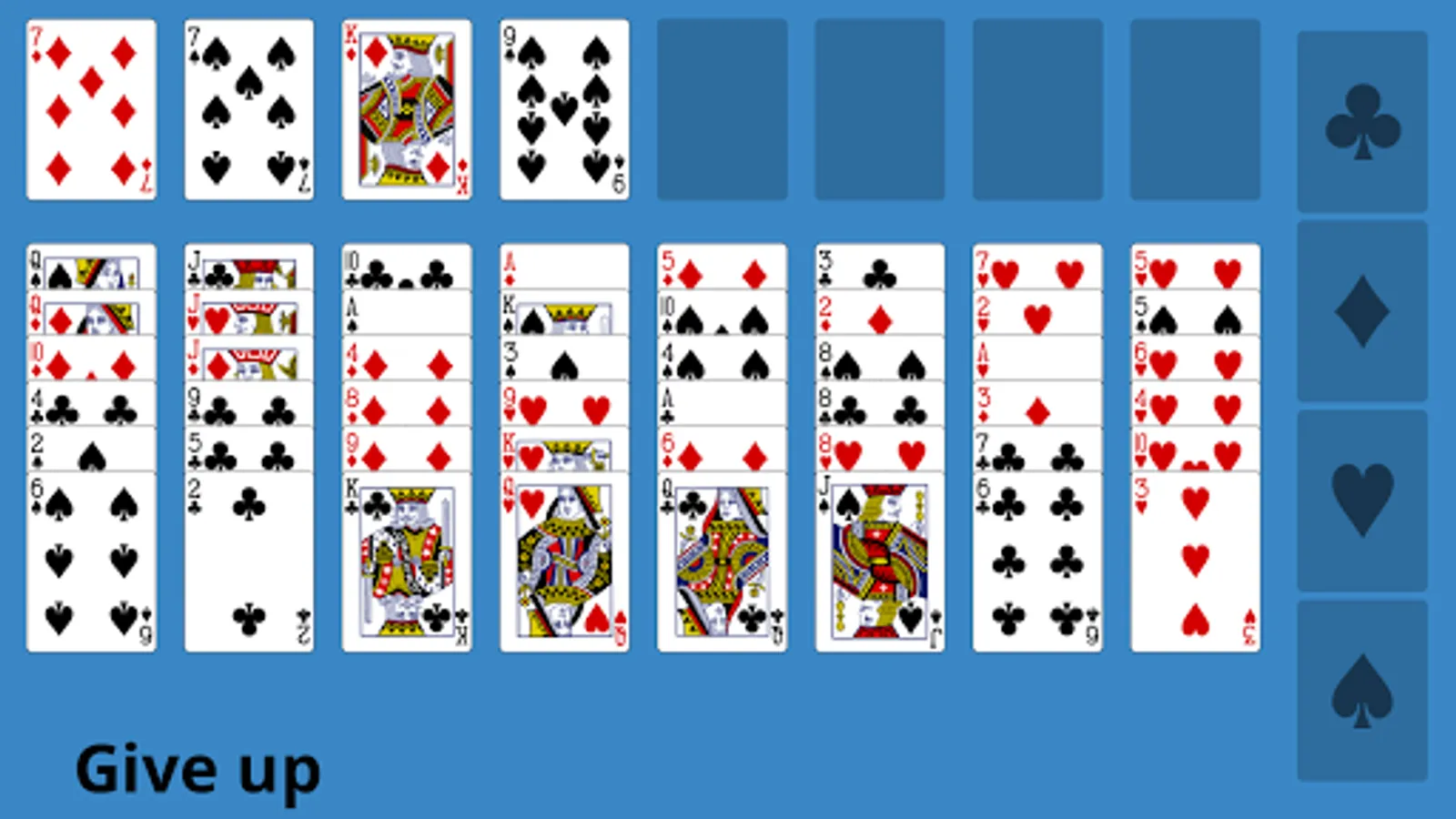 The goal in this game is to move all cards to 4 foundations by suit from A to K.