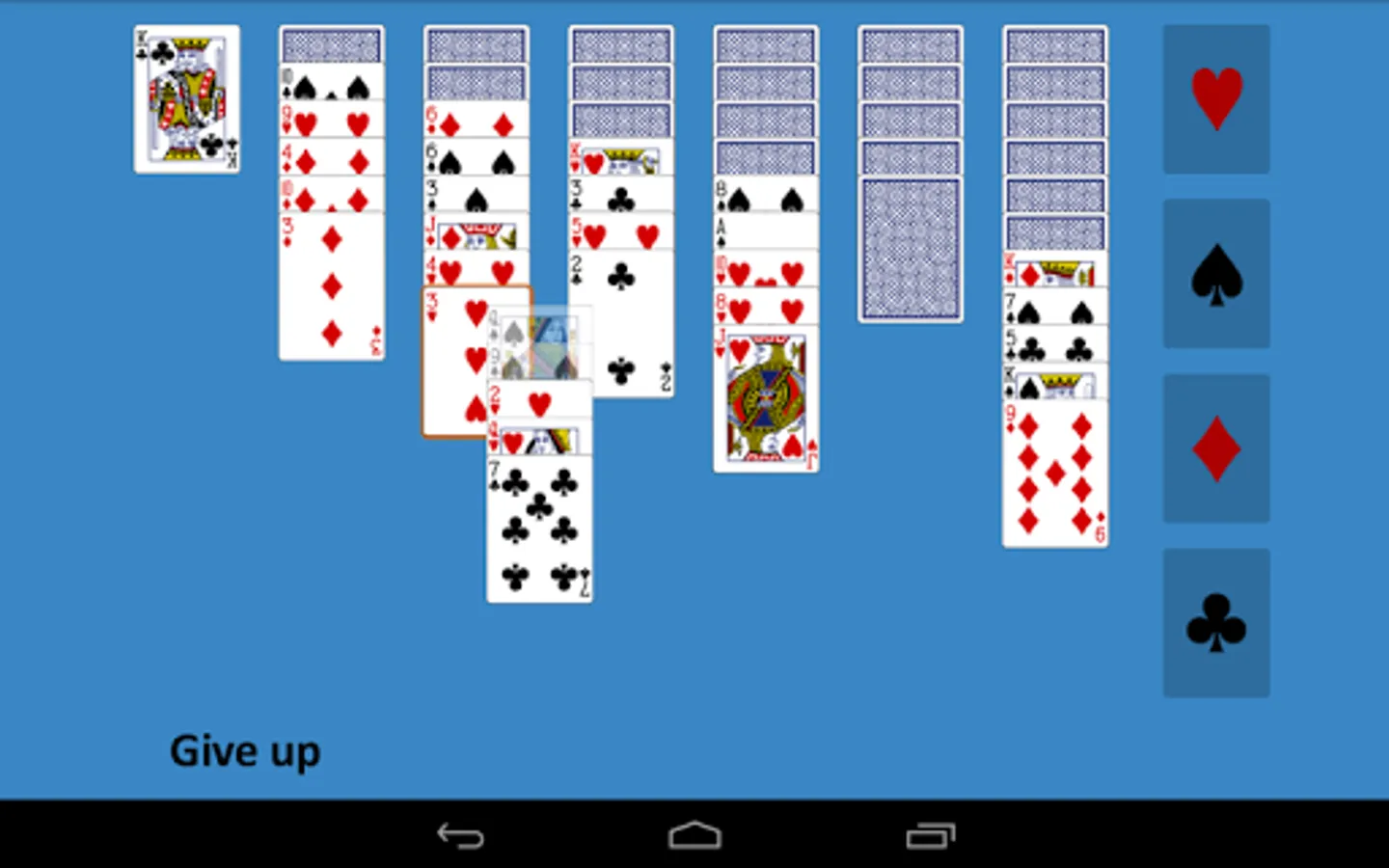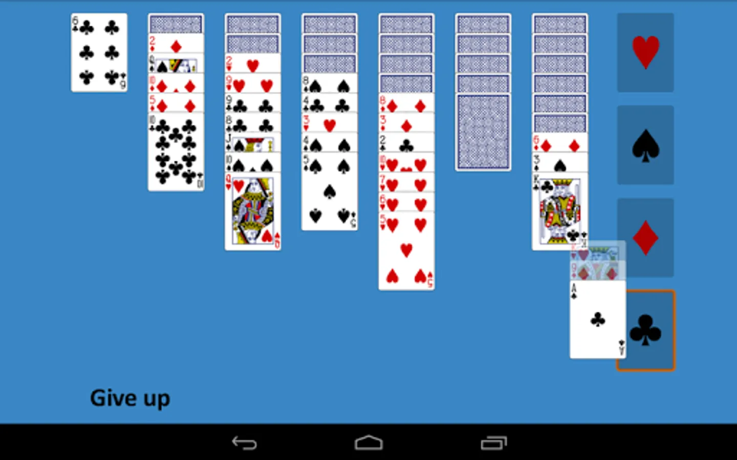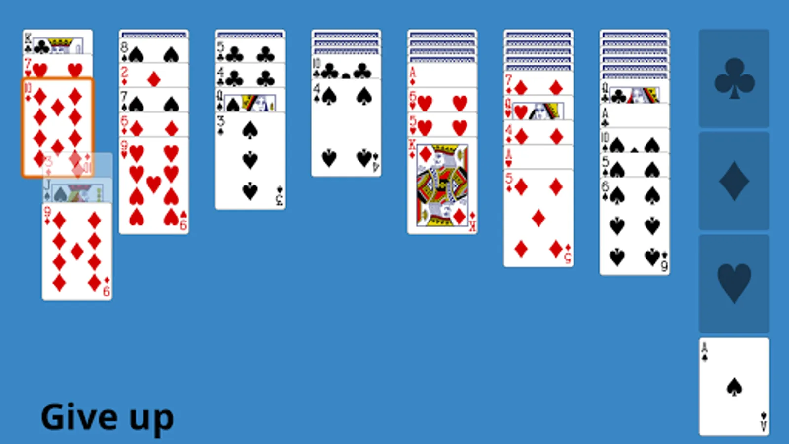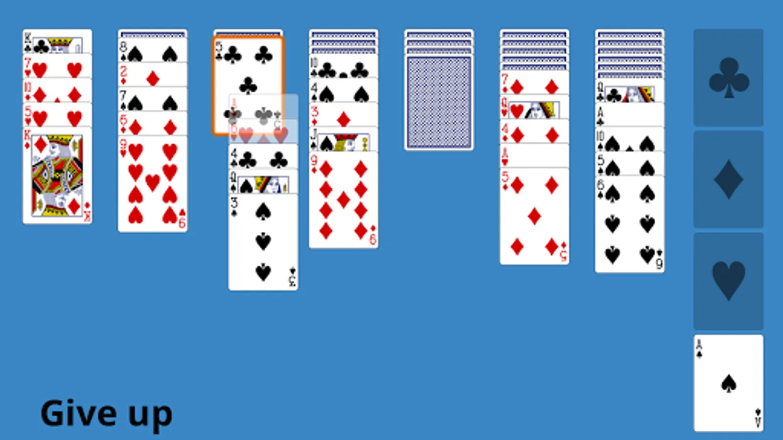 The goal is to move all cards to the four foundations at the right by suit from A to K.