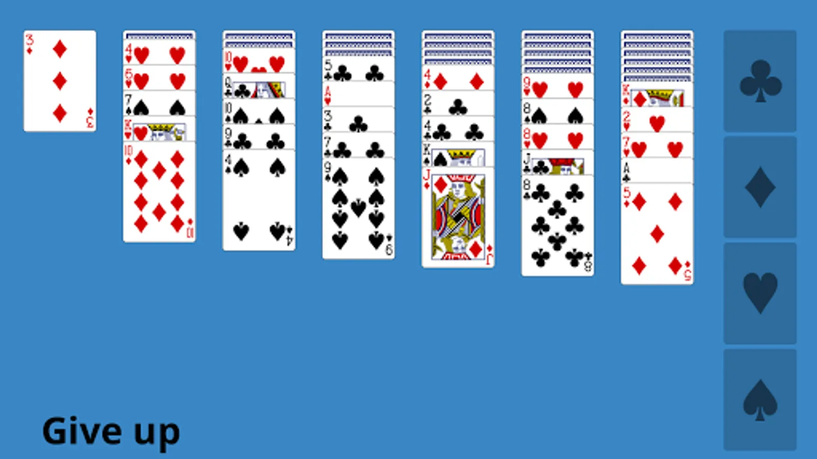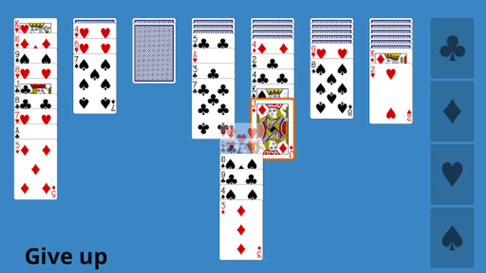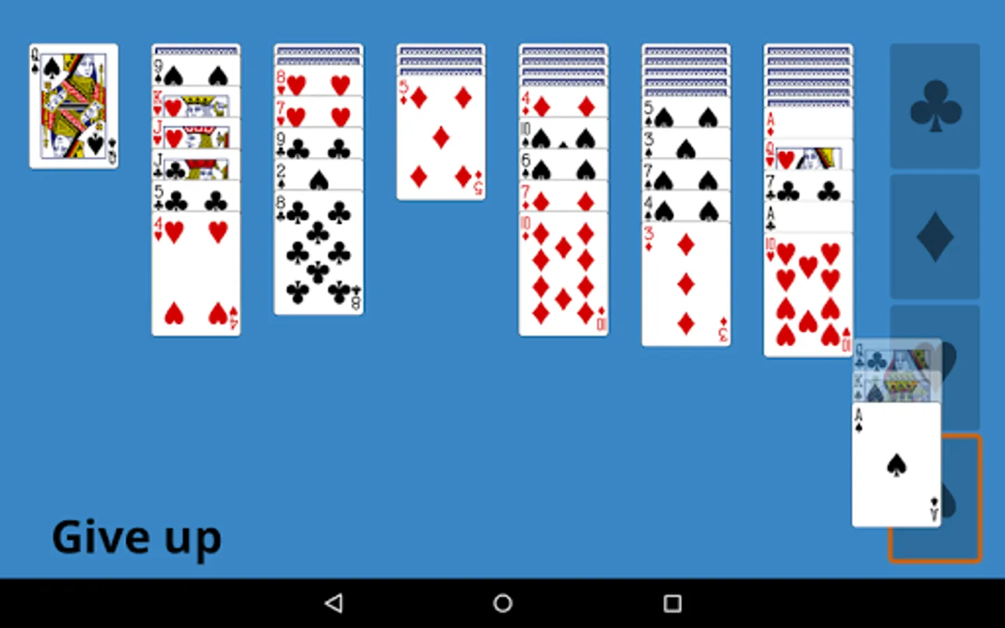 The goal is to move all cards to the four foundations at the right by suit from A to K.