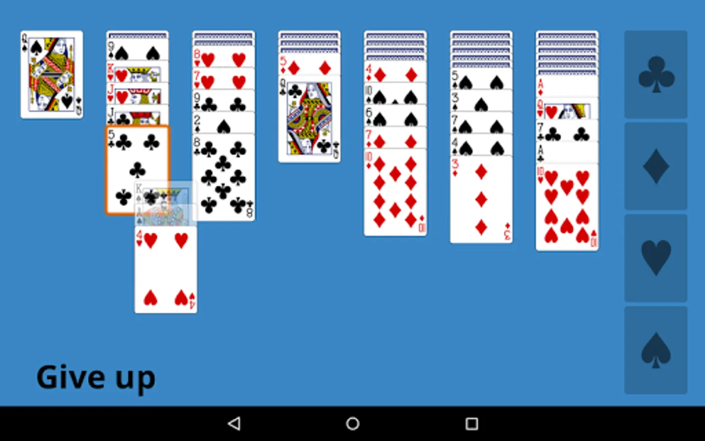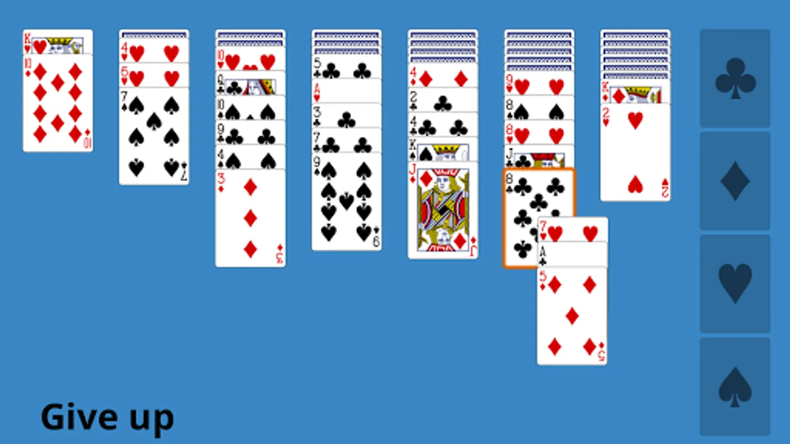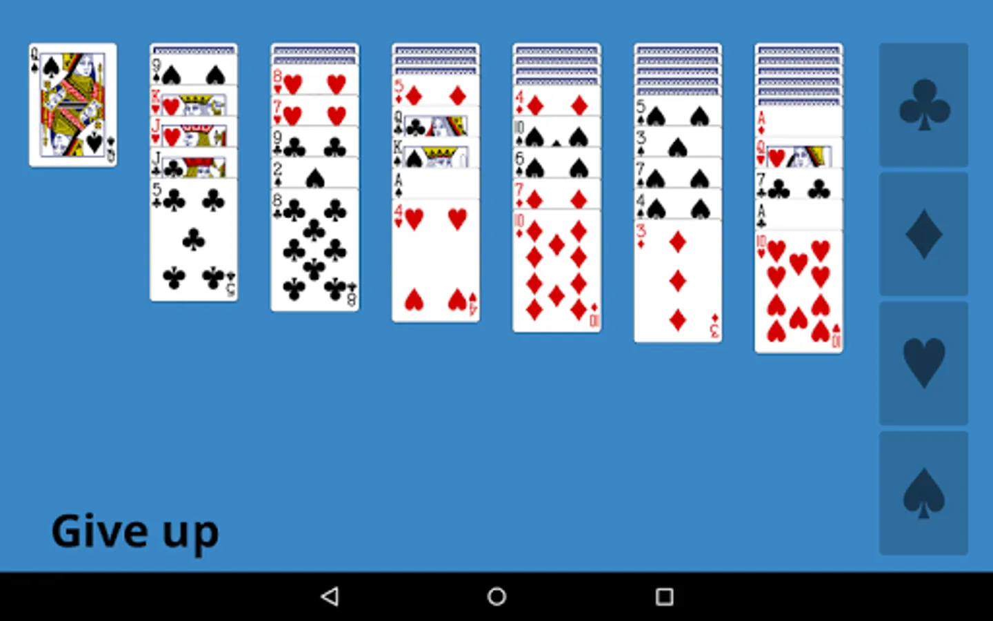 The goal is to move all cards to the four foundations at the right by suit from A to K.
