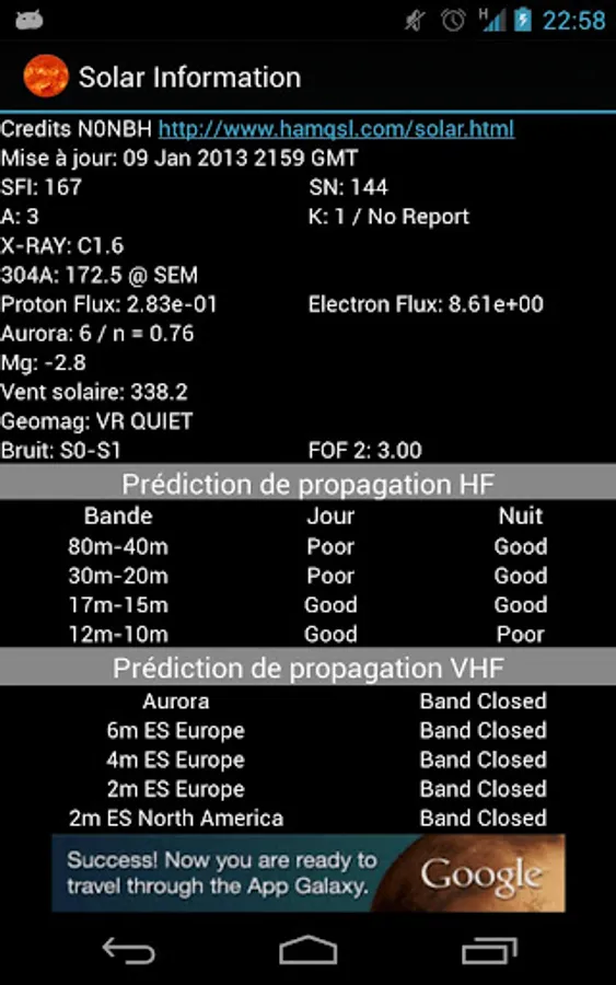 This widget display current HF propagation prediction.