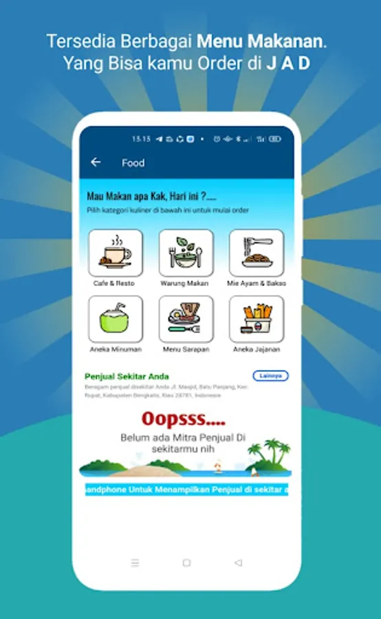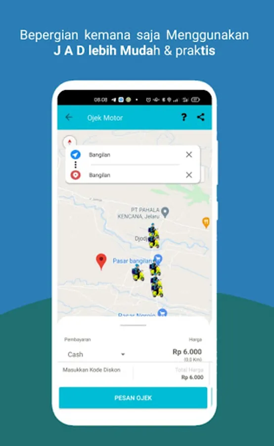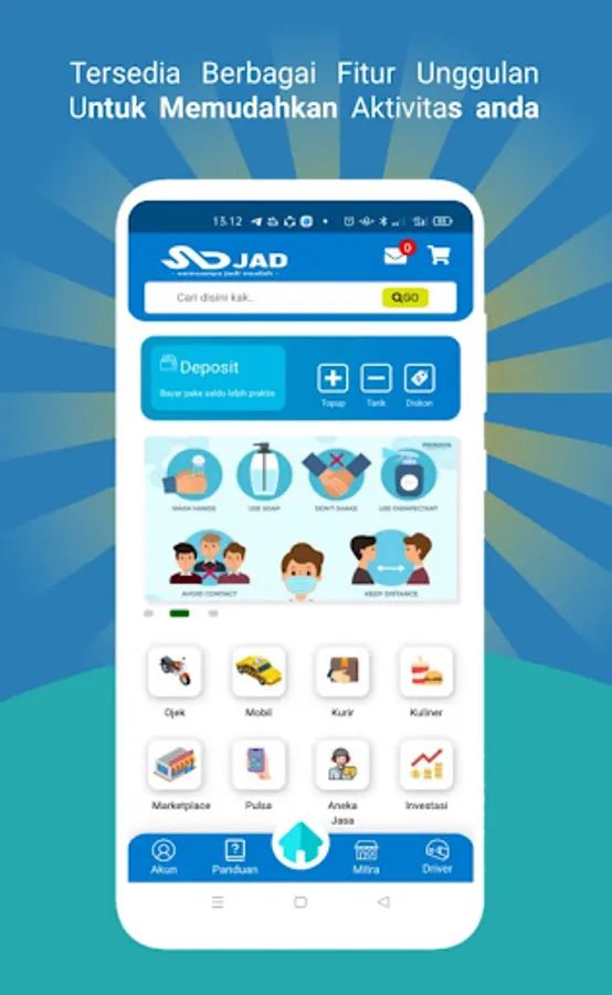 Through the JAD application we can access various services ranging from transportation (ojek, taxi, car rental)
