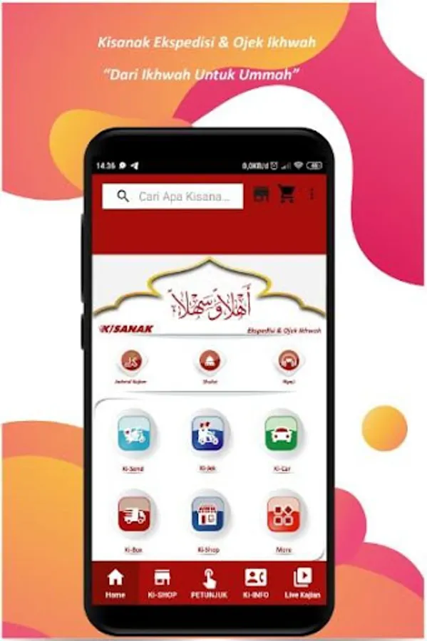 Ki-Jek & Ki-Car: Going wherever the destination will feel calm and comfortable if with Mahrom, Kisanak provides services between passengers according to gender and the Ikhwan & Akhwat mahrom. Accompanied by murottal Qur'an chanting and sunnah studies into service for Ki-Car passengers.