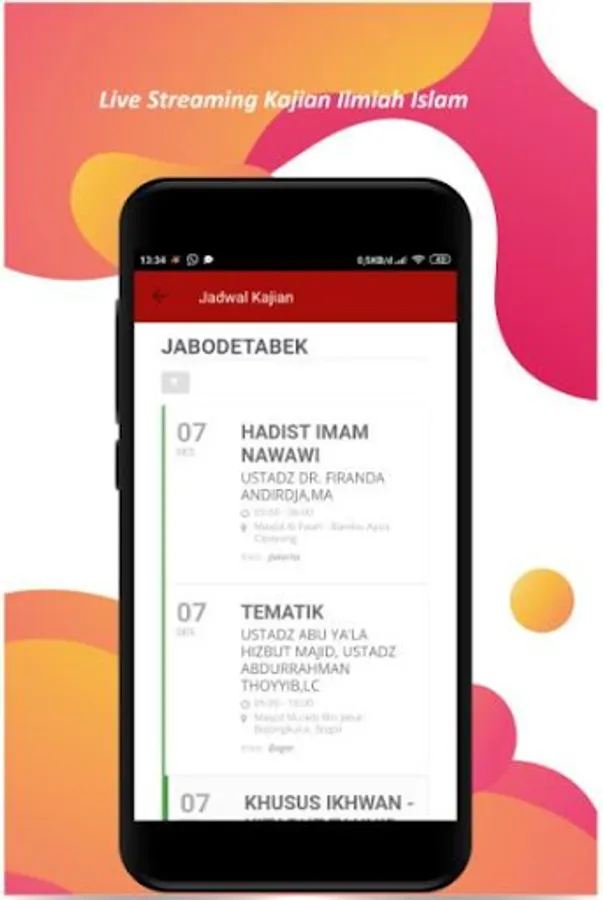 Media propaganda: Live sunnah study, recitations of the Qur'an and study schedule.