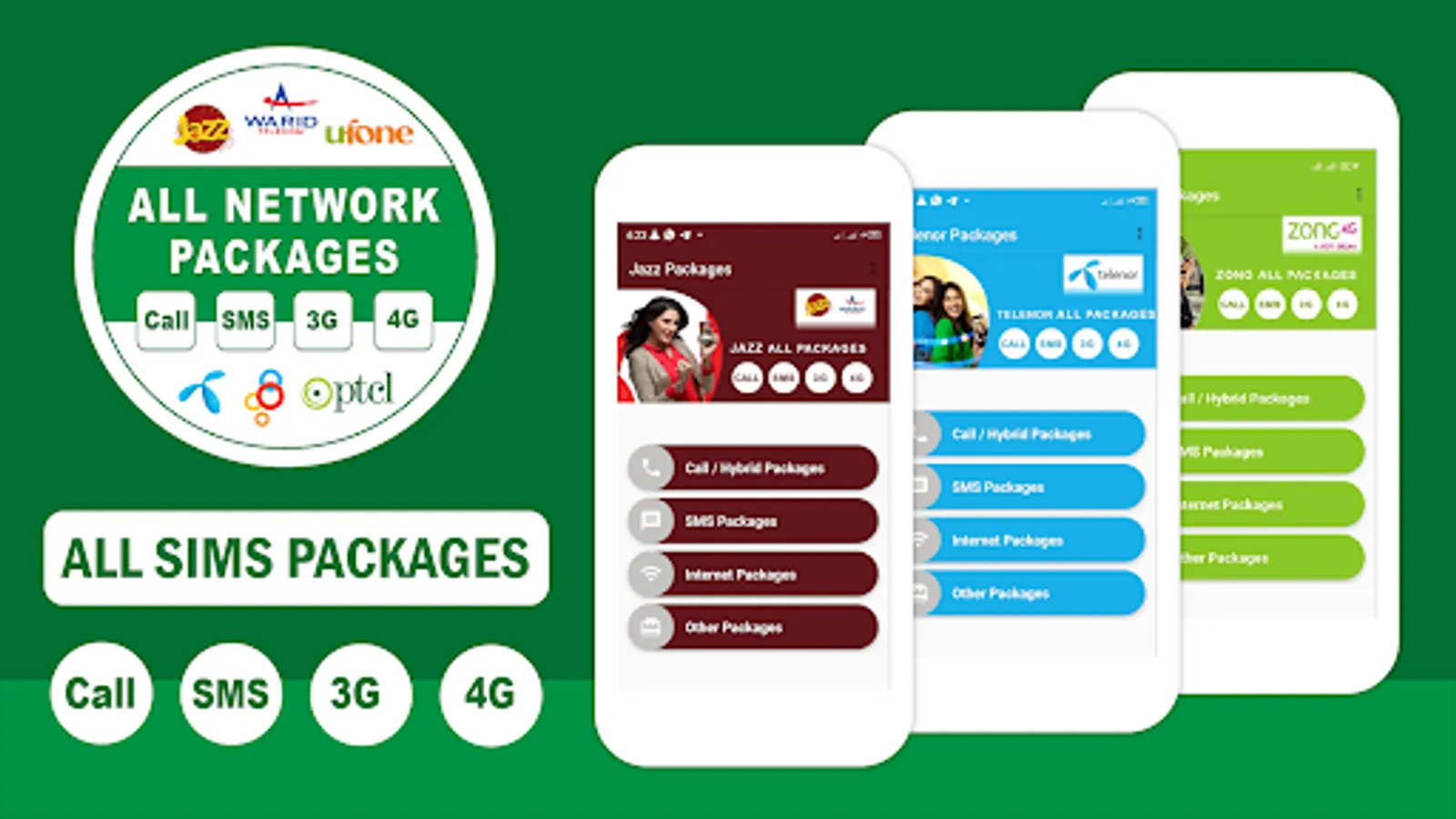 You can find following Mobilink, Zong,Ufone,Telenor and Warid packages and offers information in this app: