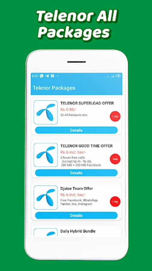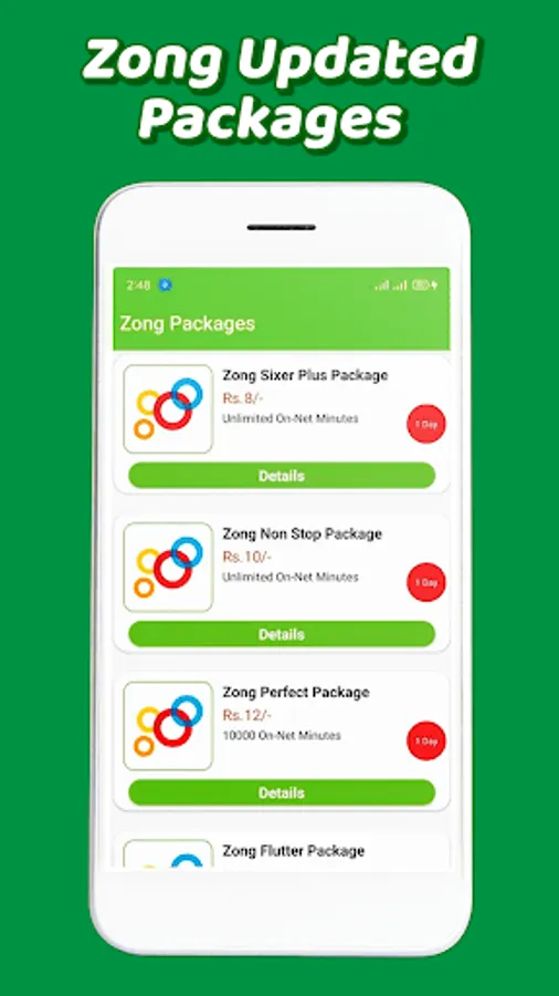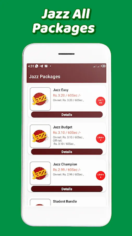 These packages consist of Hourly, Daily, weekly, monthly and yearly offers, also consist of other prepaid offers and postpaid offers. Free Packages that are offered by Mobilink/Jazz are also available in the app according to All Network packages policy.