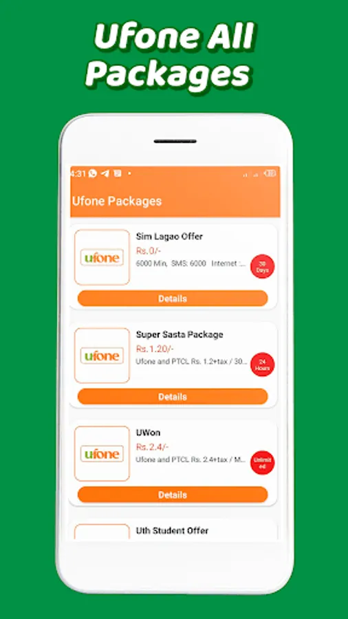 • Ufone/Telenor/Zong/Jazz/SMS Packages