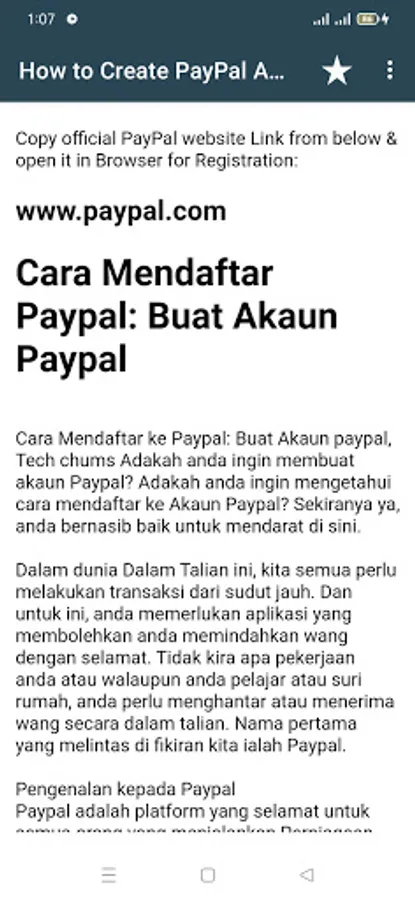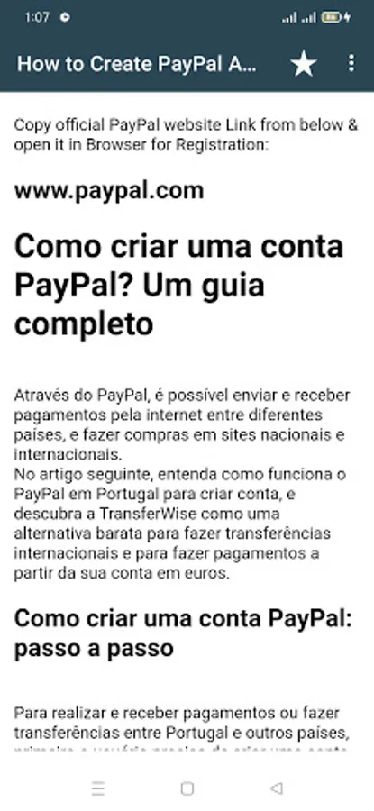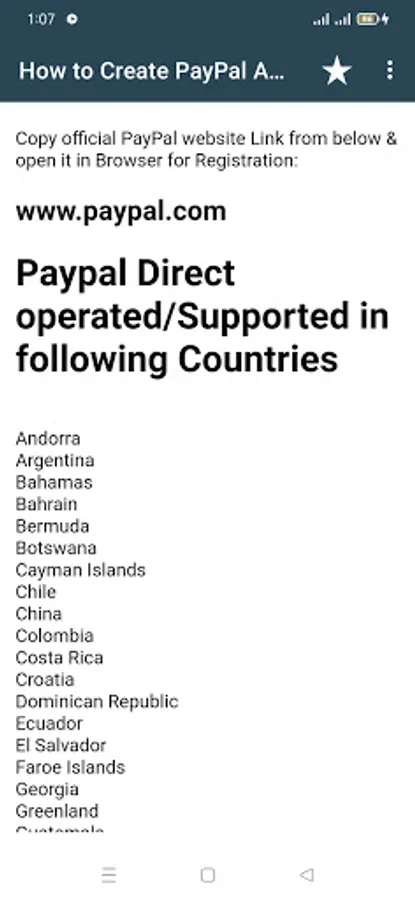This app provide guide for creating Paypal account in different countries like how to create Paypal account in Ghana, Pakistan, India, Nigeria and in many other countries. Many people need some help and learning for how to use PayPal account & start for creating PayPal account with help info. This app provide free guide PayPal mobile help & simple help tutorial for more than fifteen countries relevant to payment.all Guide here for sending & receiving money in Paypal. With complete Guide info you can start.