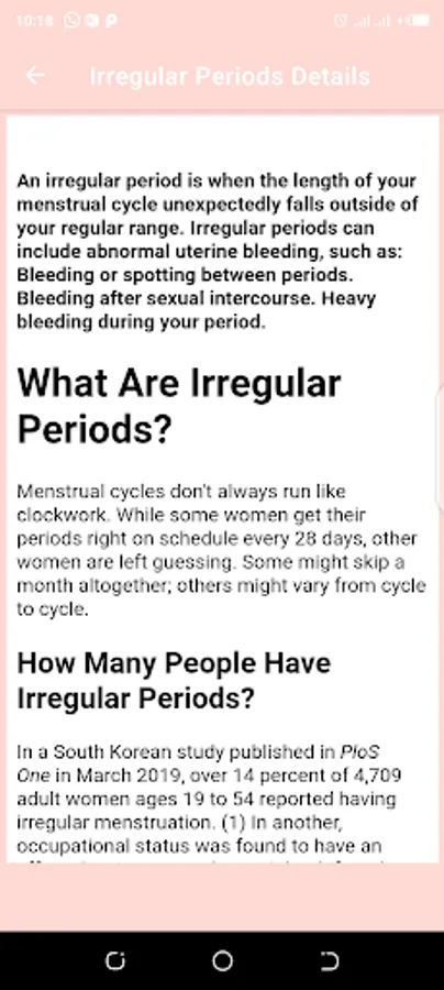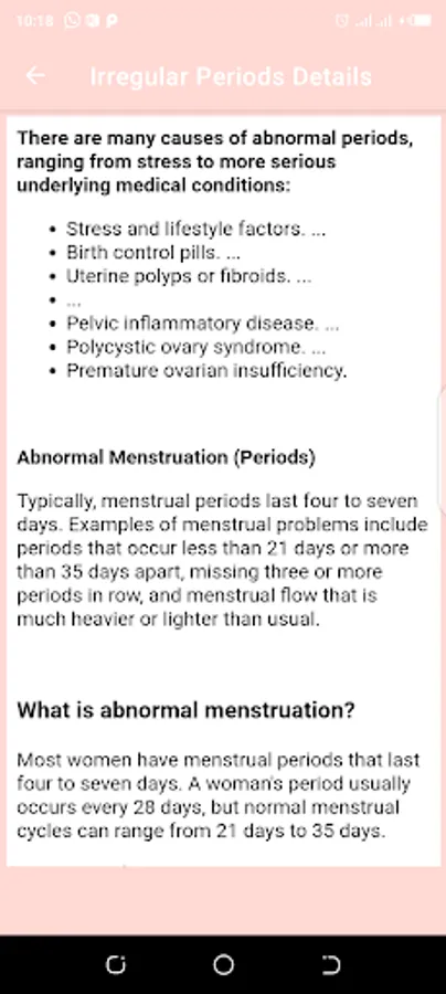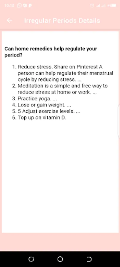 If have problem of irregular periods and want to know the causes irregular periods then this application provide you tips and tricks and some home remedies to avoid irregular periods.