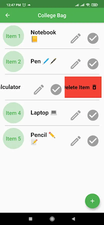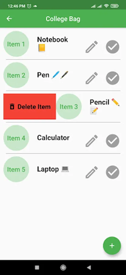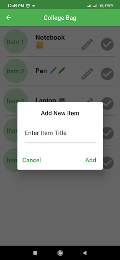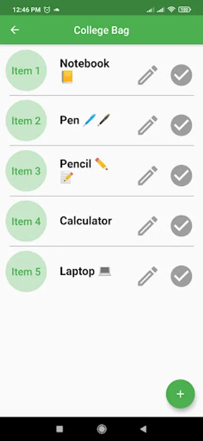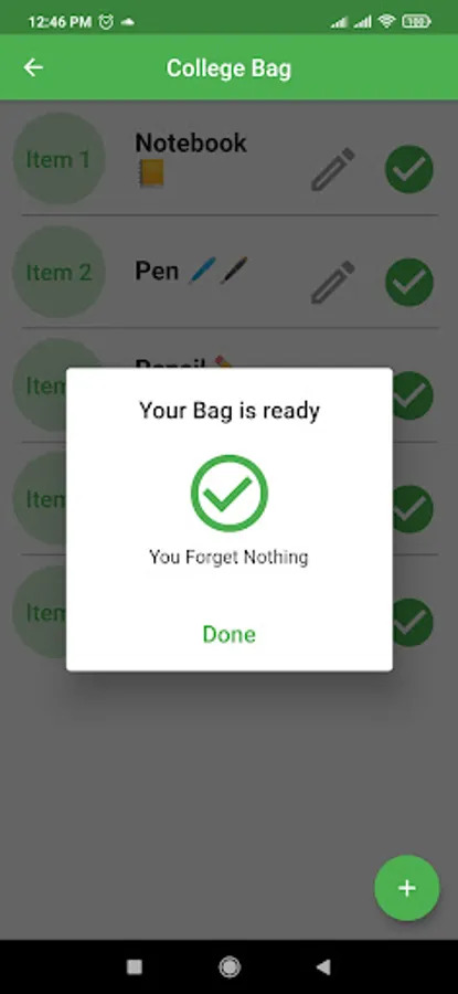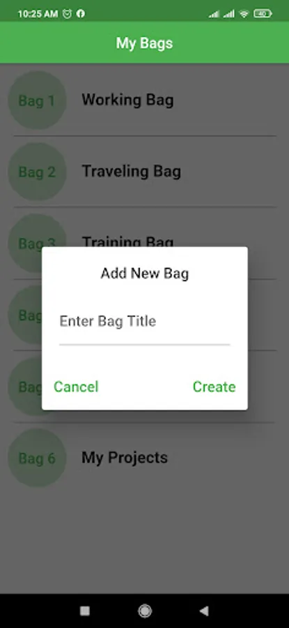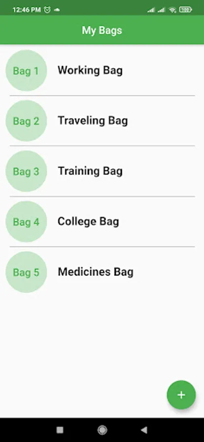 The application makes you able to create a bag for example (work bag, gym bag, school bag, traveling bag..., etc.)