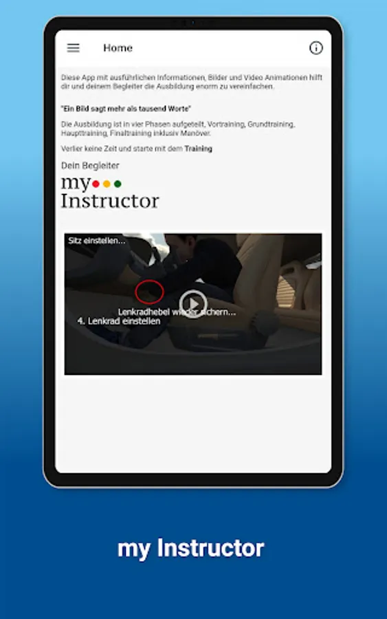 Diese App mit ausführlichen Informationen, Bilder und Video Animationen hilft dir und deinem Begleiter die Ausbildung enorm zu vereinfachen.