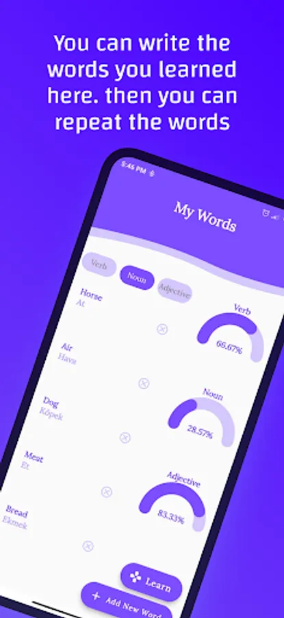 Your assistant when learning a new (English, French, Turkish .etc) language. You can write the words you learned here. then you can repeat the words. You will also be able to see the statistics of the words you have learned. Download now and start using. My Dictionary, Your Dictionary and Everybody's Dictionary
