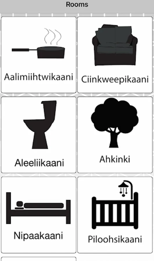 Niiki, “my home”, brings Myaamia language to your fingertips. Learning tools such as audio recordings, flash cards, and photos are included to help you learn the common Myaamia terms used in the rooms of your house, and more!