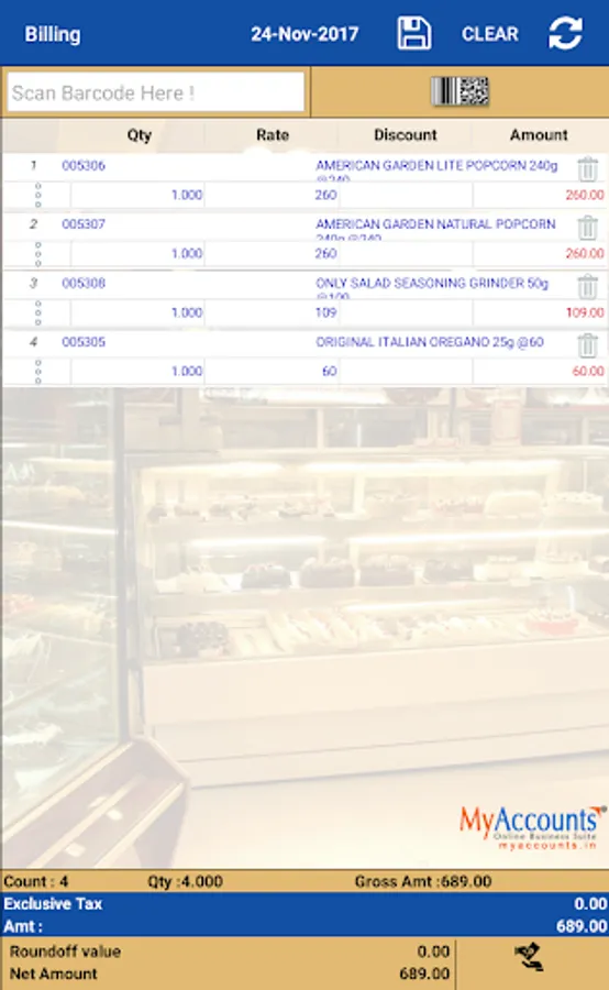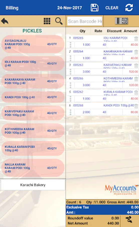 Bakery Billing Solution with complete control over your Bakery which streamline processes & operations to minimise waste and boost profits. MyAccounts Bakery Billing solution handles end to end operations including Orders, Invoicing, Stock Control, Control over costs, compliance and traceability. The solution is flexible for a Retailer, wholesaler or both and meet the business objective with better insight and analytical reports.