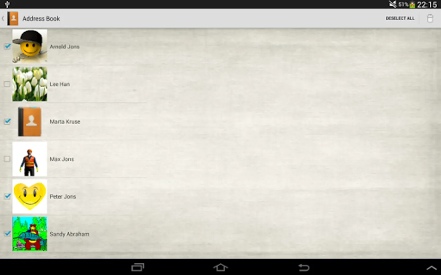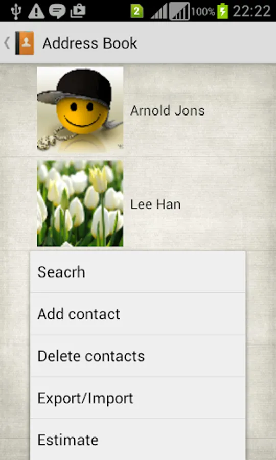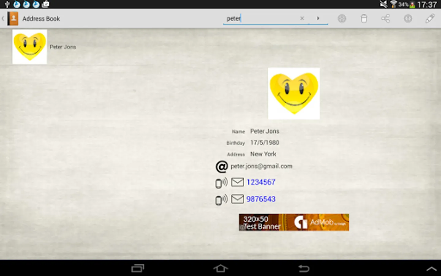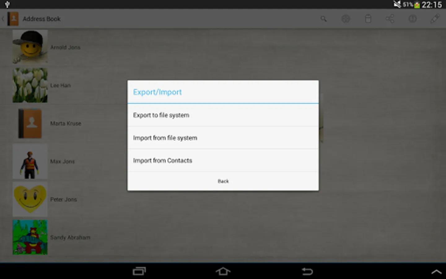 Create, load, edit, save and keep Your Contacts with photos and images in this Book. You may call, send Sms and E-mail.