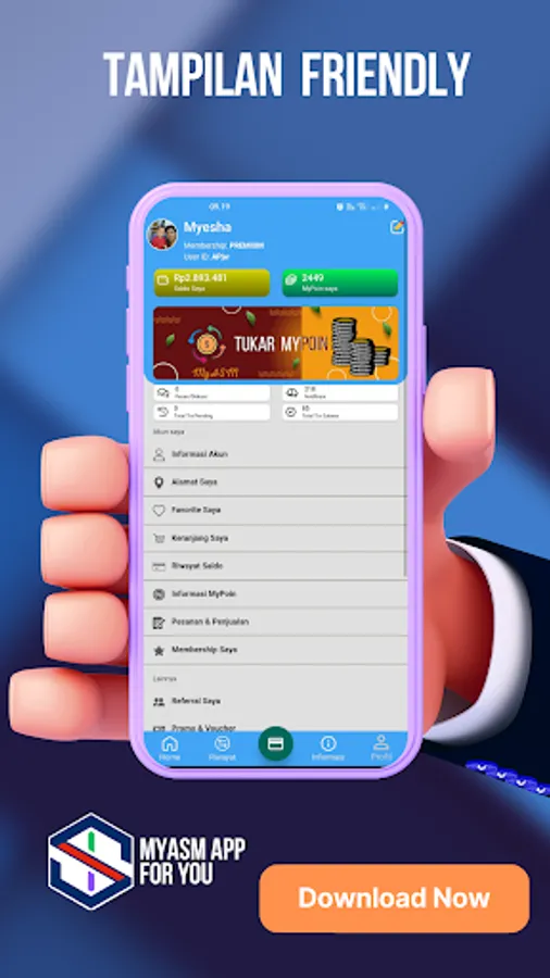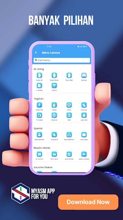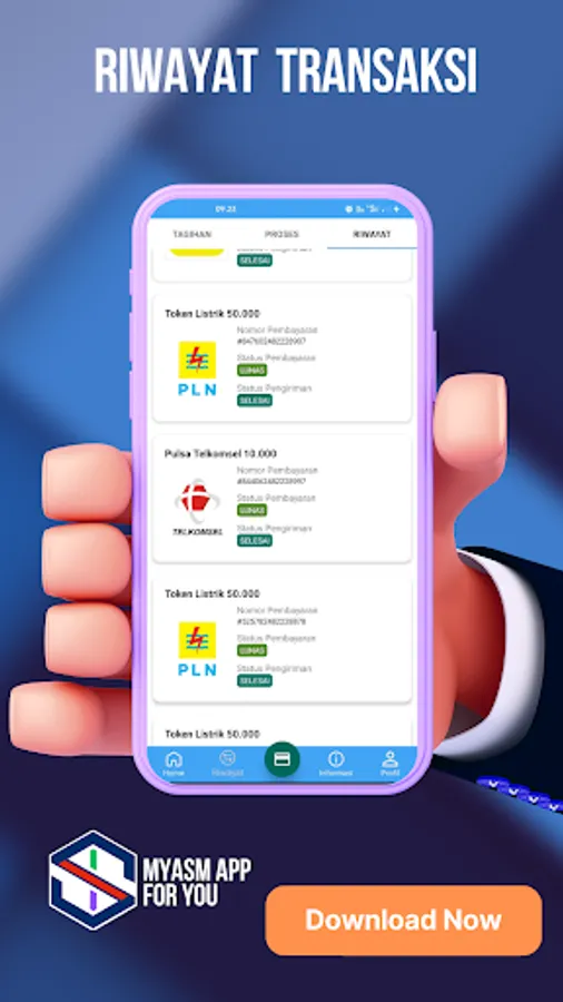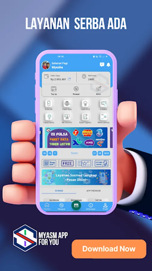 MyASM - PPOB & Social Media is a complete digital application to help credit counter businesses, stalls and social media users to make PPOB and social media service transactions easier, cheaper and more complete. With MyASM you can become a credit agent, electricity token, PPOB, Social Media and transfers very easily.