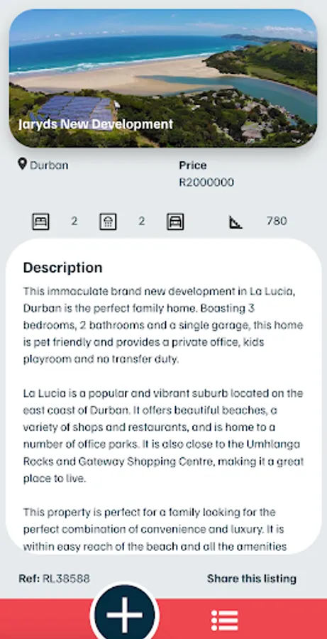 Easily save features to your property listings and share them directly from the app to whatsapp and other social platforms.