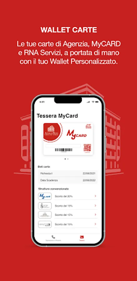 - Personal and active card wallet (MyCard and RNA Servizi)