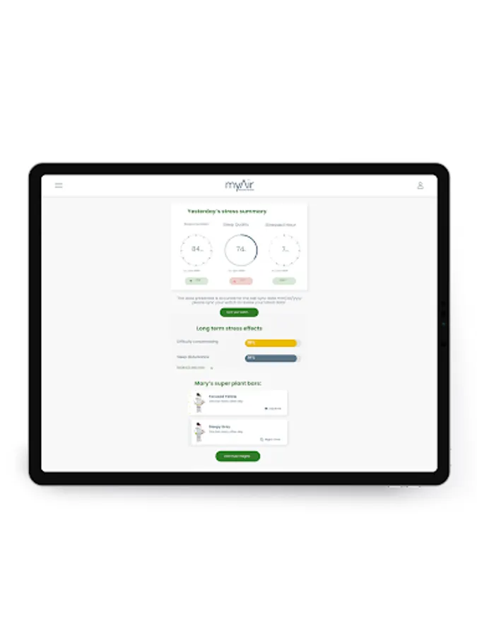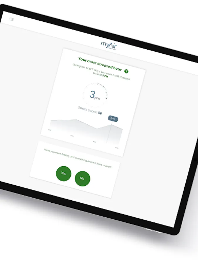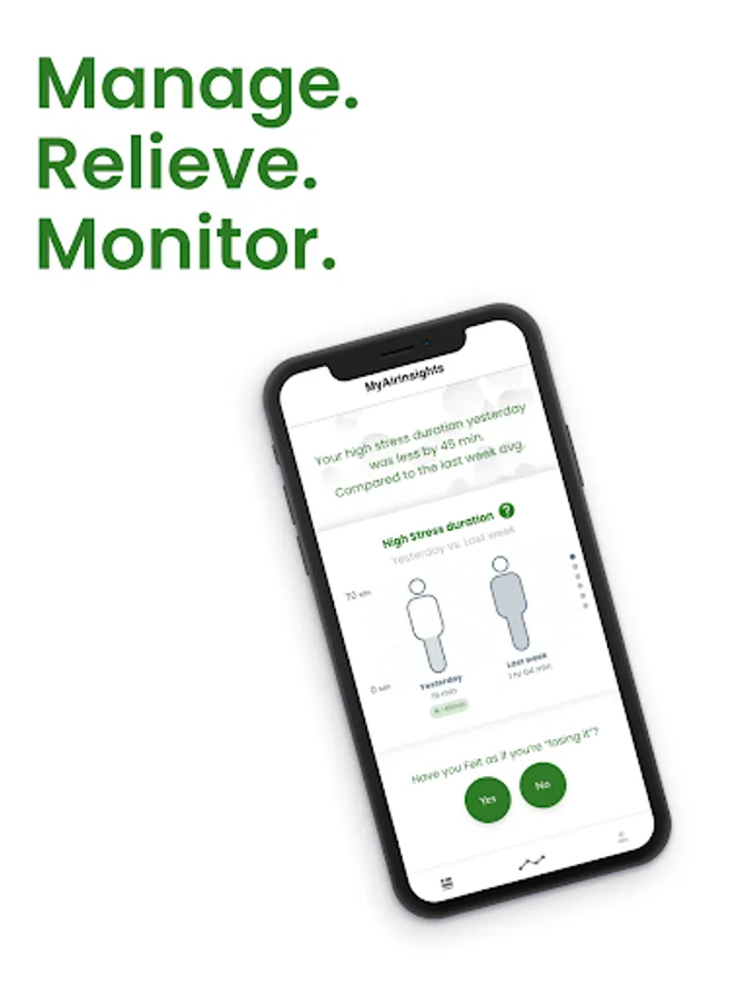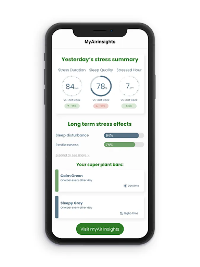 Connect your smartwatch to the myAir insights app for analysis of your stress, sleep, and other critical data. This app will open your eyes on your stress effectors and provide you with helpful tips to combat them.
