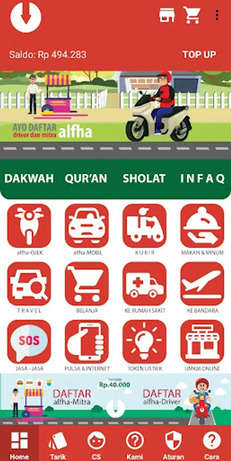 alfha Solok Selatan - Is an online motorcycle taxi service, online food and other services in this application that are served online. Alfha application is the work of Nagari children. This alfha application is made to help community activities in meeting transportation and agency needs, in the era of digital technology. besides that alfha application aims to participate in helping economic growth in society.