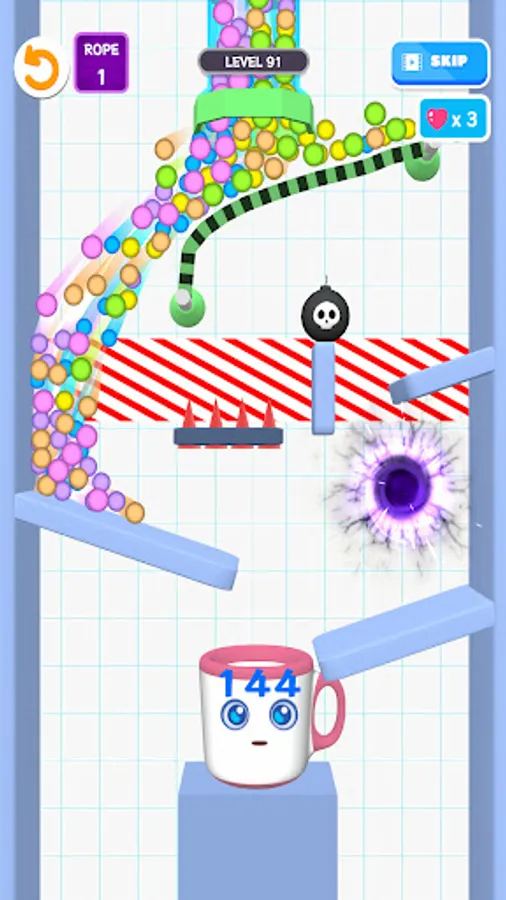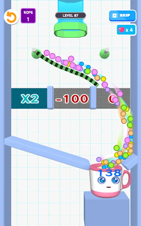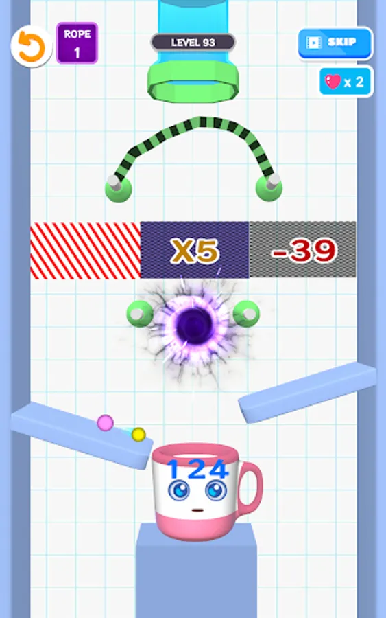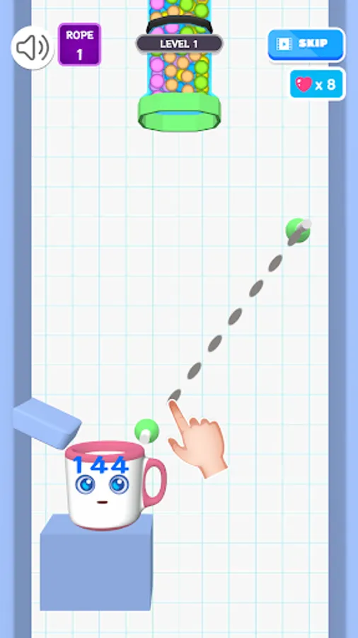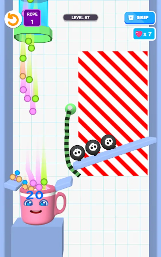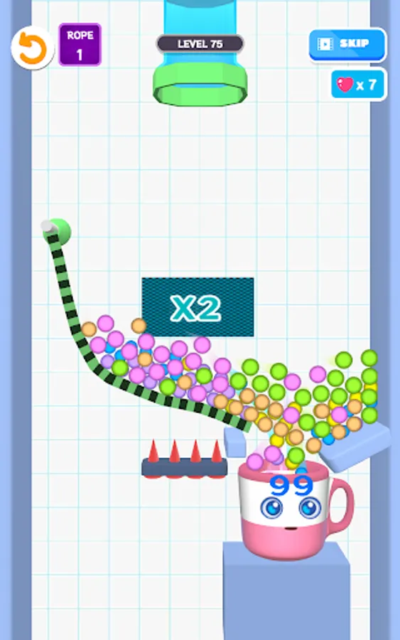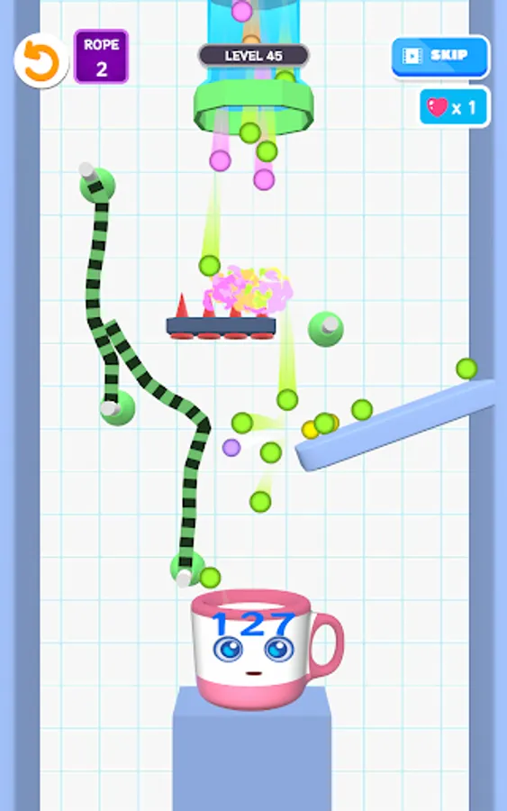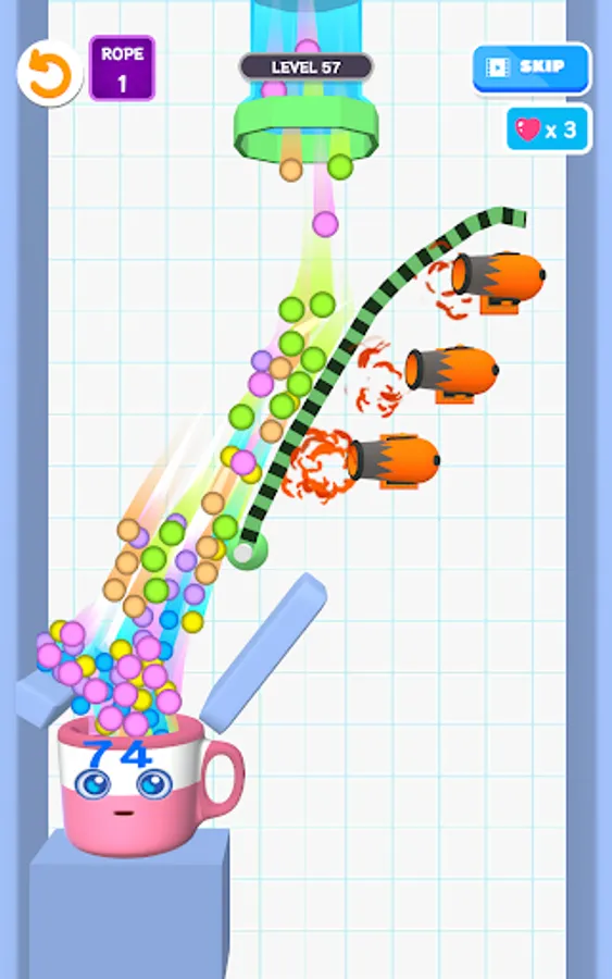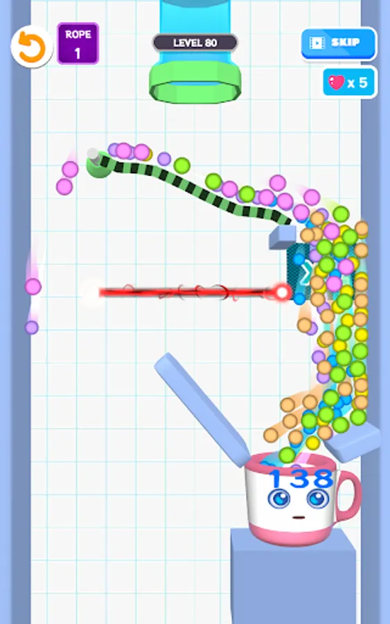 The mechanics are so simple, just draw rope to collect all the balls into the cup!