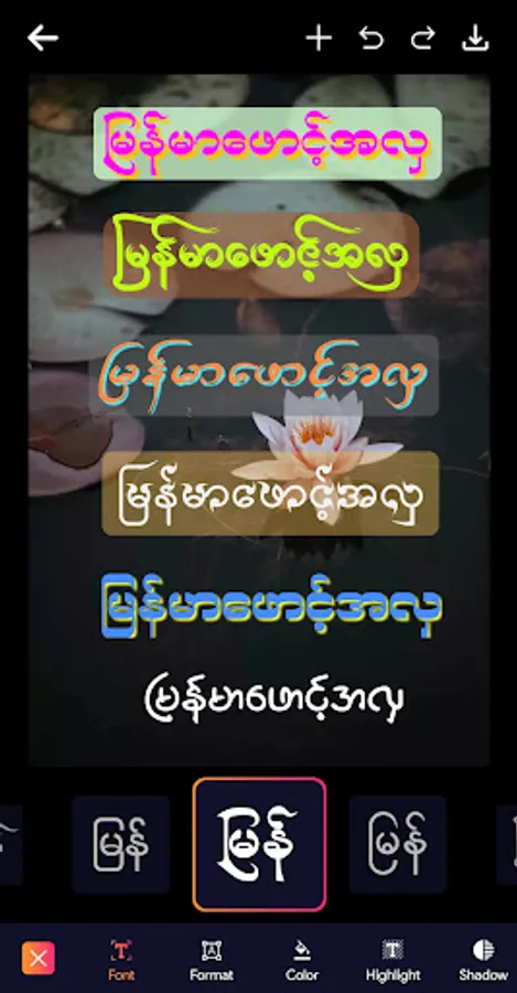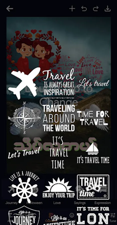- Add layers: texts, photos, shapes, stickers and saved text styles
