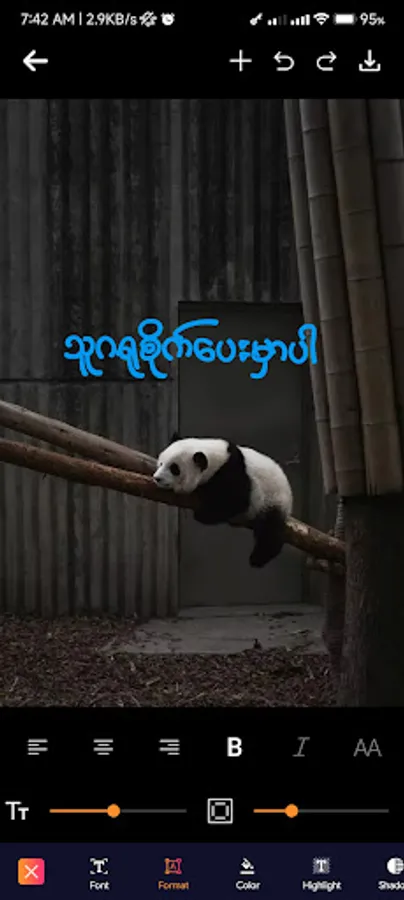 Font and Format tools: change font, alignment, text size, with bold, italic, underlined & strikethrough options