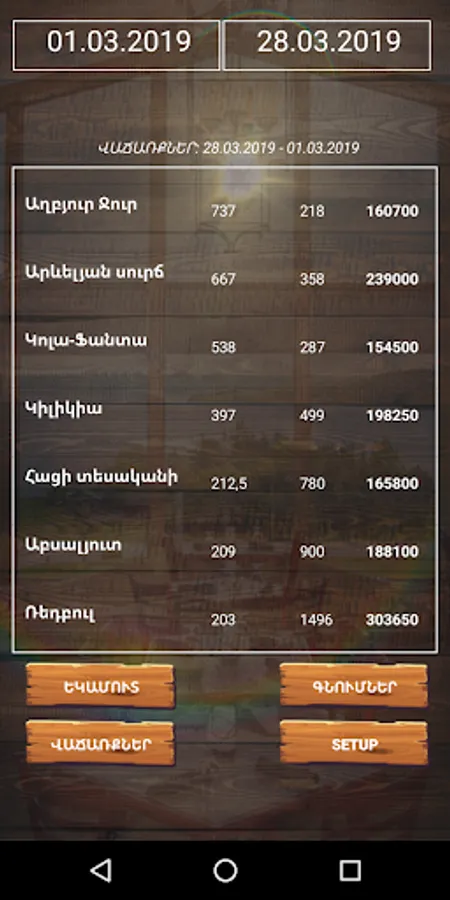 The application is designed to remotely view information about the activities of restaurants where the "AramiCragir" server is pre-installed.