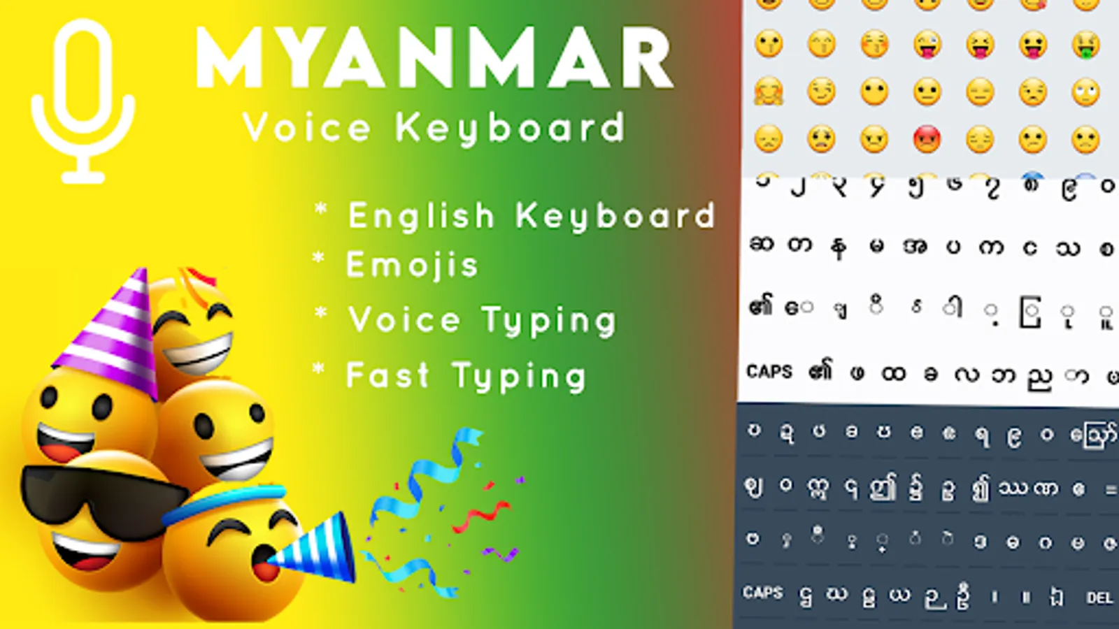 Myanmar Keyboard 2021 - Myanmar Voice Typing Keyboard app makes it very simple to write Myanmar language. Myanmar typing keyboard app has 1st priority of easy and fast typing. Myanmar voice keyboard app also provides a feature of typing through voice. You can speak your text in mice within this Myanmar and English keyboard app. Myanmar keyboard offline app can convert your voice into text. Myanmar language keyboard app helps you to type long office documents, emails & other kind of text. Myanmar English keyboard app gives you word suggestion. You can easily switch between Myanmar & English language in this best Myanmar keyboard. Myanmar Keyboard 2021 - Myanmar Voice Typing Keyboard app is available free of cost on android play store. Myanmar typing keyboard app is comfortable for all tablets & android phones. Easy Myanmar keyboard app also has a great collection of stickers and Emoji. You can express your feelings through these Emoji and stickers in this stylish Myanmar keyboard. Myanmar Keyboard 2021 - Myanmar Voice Typing Keyboard app can be used to write messages, emails and all other important documents.