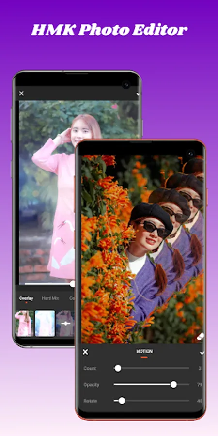 - Overlay Effect : More than +90 effect with adjust the opacity of the filter to make the photo more beautiful.