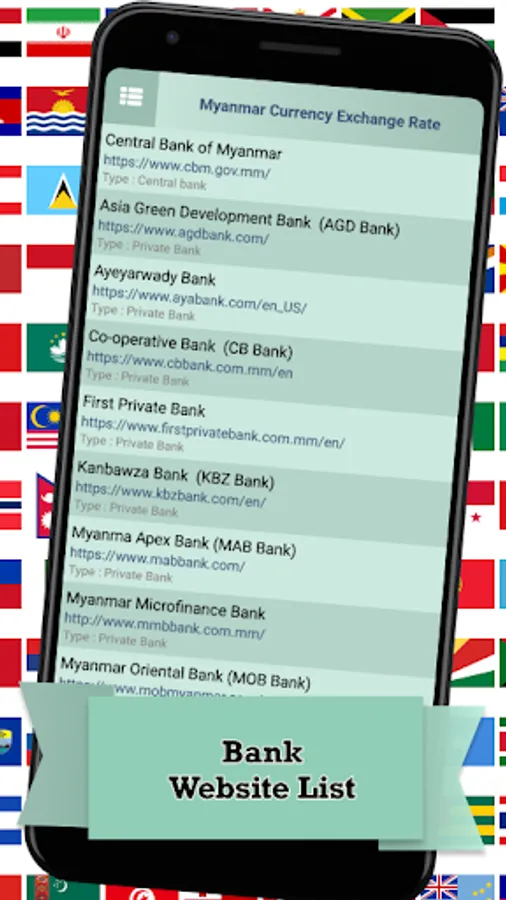 The Myanmar Money Rate Application shows real time Currency Exchanges rates in Myanmar Currency(Kyats) from Central Bank of Myanmar.