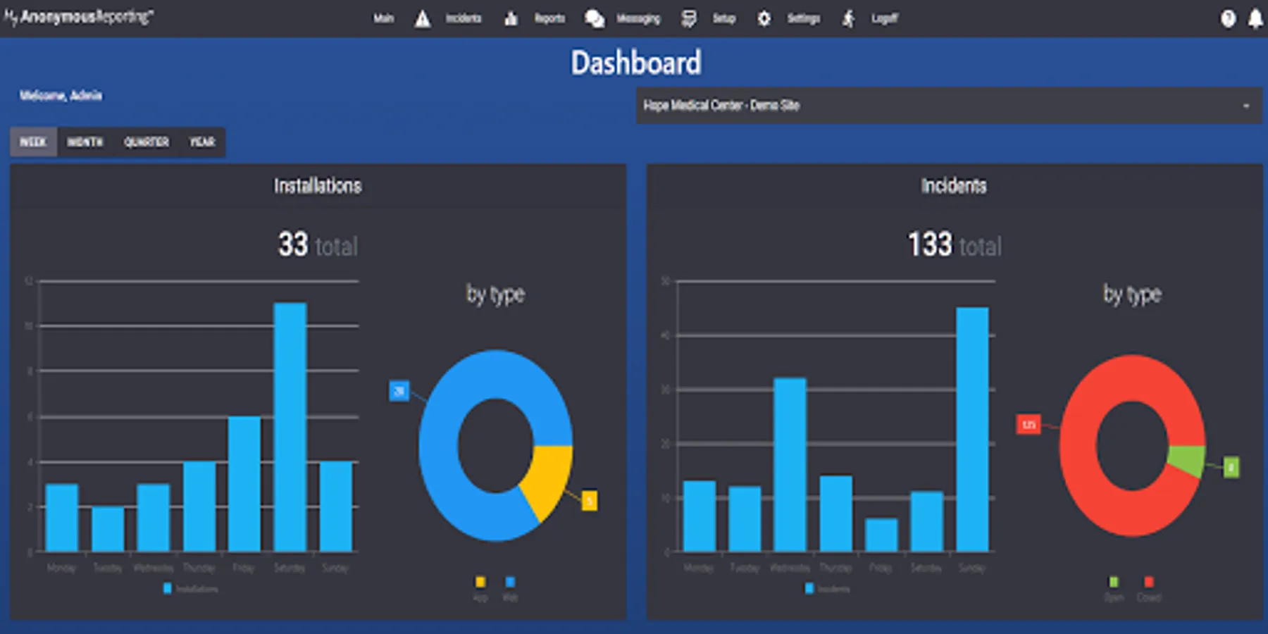 Alerts notify designated administrators of new incidents by email and/or text. Administrators can then assign incidents to designated personnel for review and management.