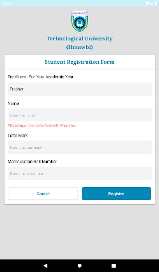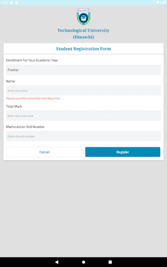 TU(Hmawbi)SRSFMS is an online student registration and pays the fees for the TU(Hmawbi) School. It is safe and simple. The students of TU Hmawbi can register to attend the new academic year and easily pay the charges of school fees by connecting the popular and secure online payment of Myanmar or Master Card or Visa Card. Moreover, the students who are entrance TU Hmawbi can also register and pay the charges of school fees by using this mobile application. This application is intended for the students of TU(Hmawbi).