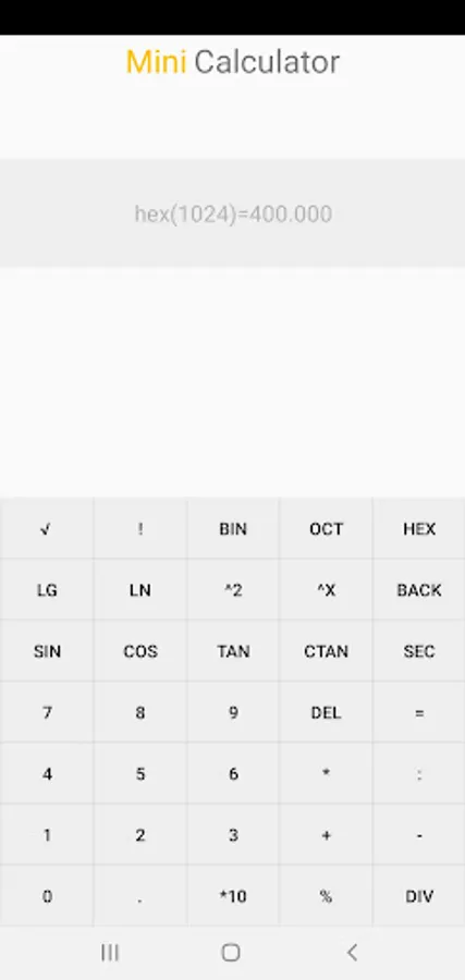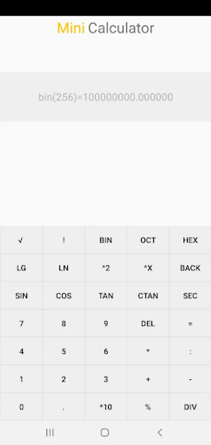 Калькулятор может складывать, вычитать, умножать, делить, находить остаток от деления, извлекать квадратный корень, возводить в степень, работать с тригонометрическими функциями, вычислять факториал, натуральный и десятичный логарифм, переводить целые и дробные числа в двоичную, восьмеричную и шестнадцатеричную систему счисления.