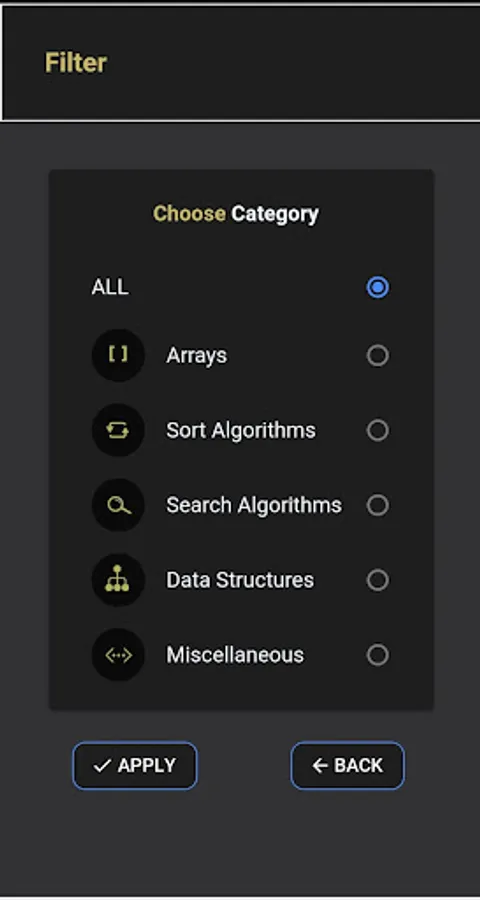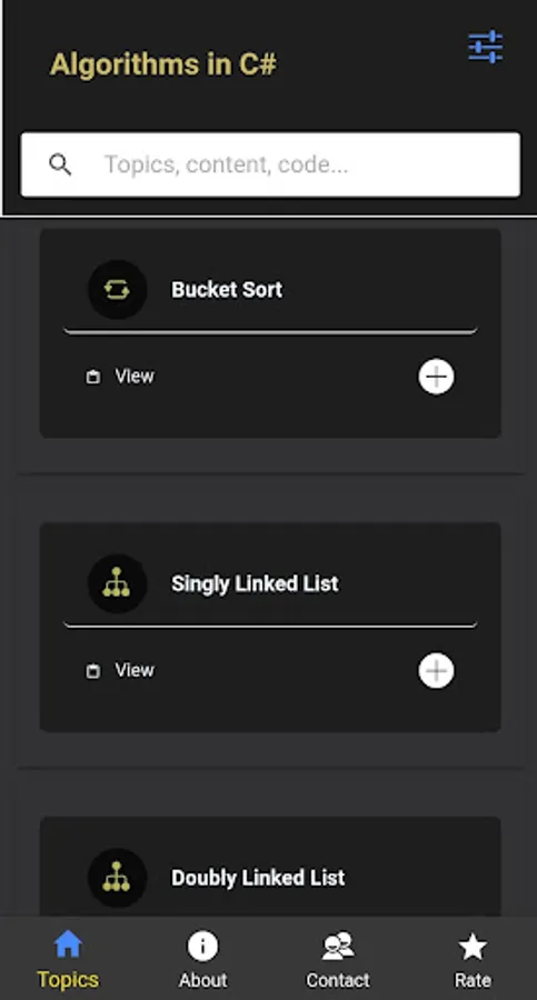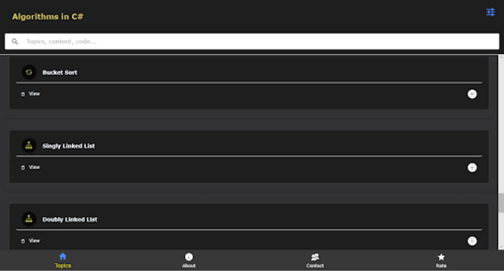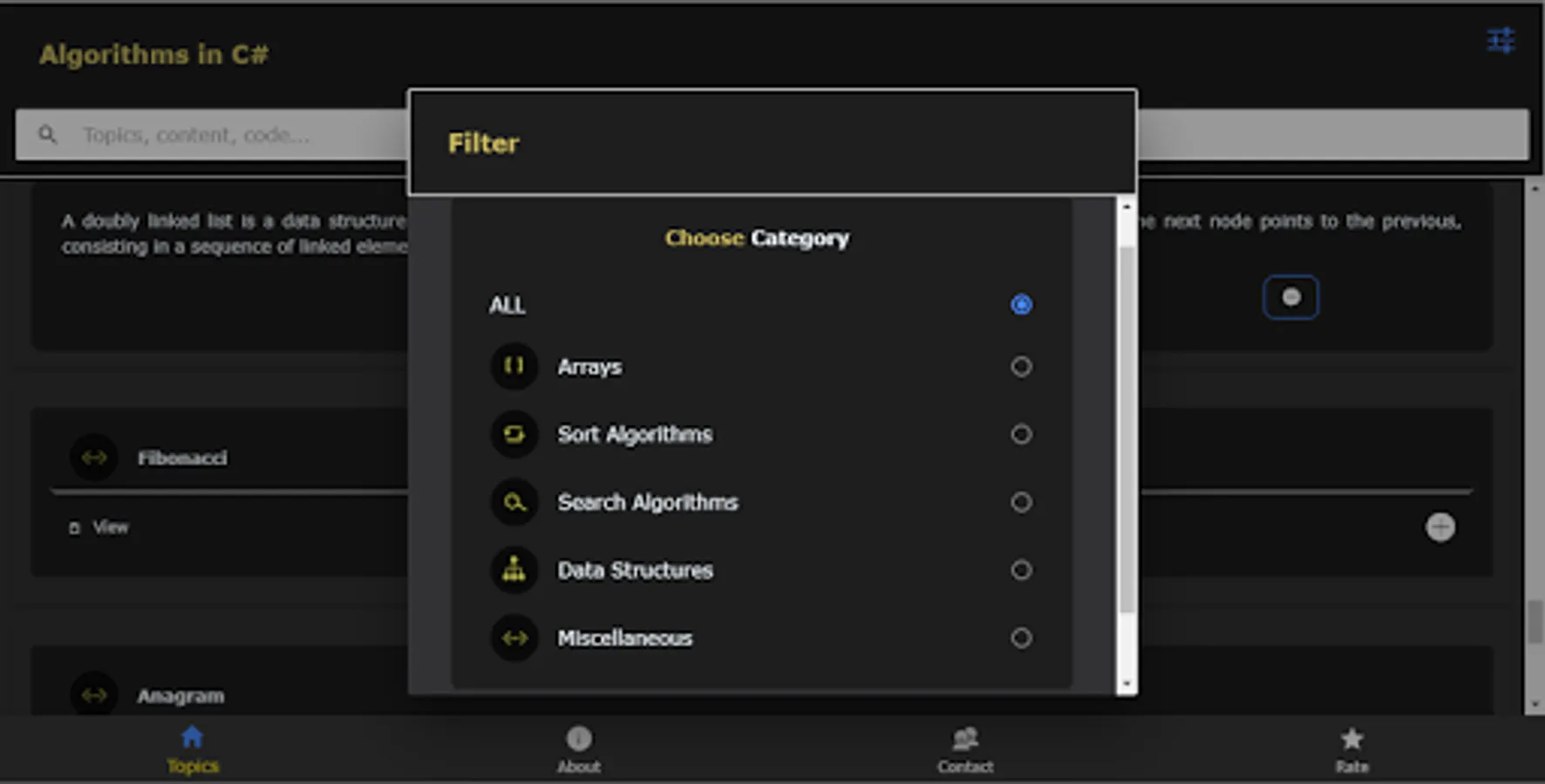 You can filter the content by category or you can search the content based on topics, descriptions or a specific code.